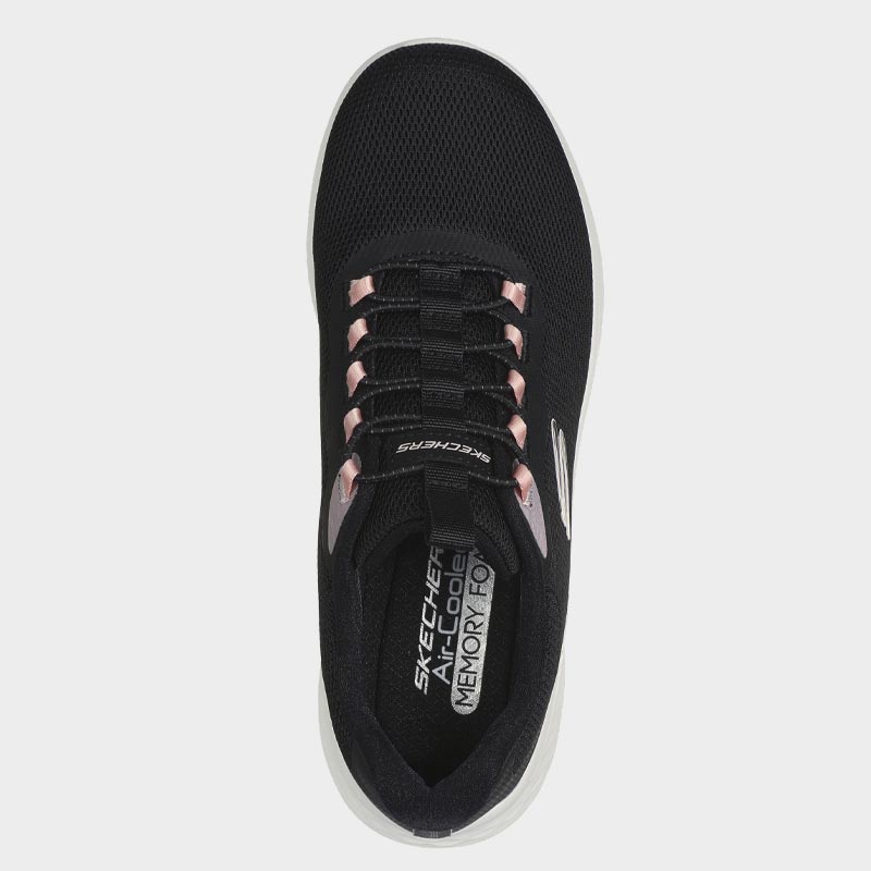 Sneaker της Skechers με άνω μέρος από mesh ύφασμα σε μαύρο χρώμα με ροζ λεπτομέρειες. Διαθέτει μαλακό εσωτερικό πάτο Air Cooled Memory Foam αι ενδιάμεση σόλα Skech-Lite για απορρόφηση κραδασμών. Ένα κομψό, σπορ παπούτσι που θα σας χαρίσει άνεση και στυλ.