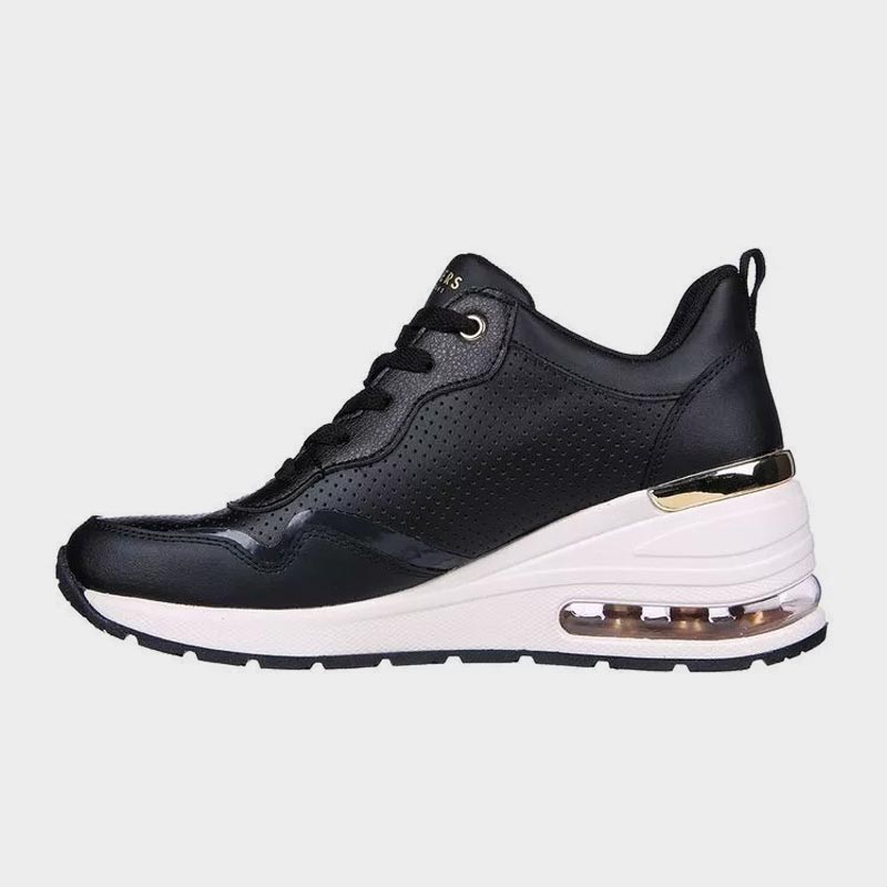 Sneaker της Skechers με άνω μέρος από γνήσιο και οικολογικό δέρμα και χρυσές λεπτομέρειες. Διαθέτει μαλακό εσωτερικό πάτο Air-Cooled Memory Foam® και ενδιάμεση αερόσόλα Skech-Air® για αντικραδασμική δράση. Ένα άνετο και κομψό παπούτσι για άνεση και στυλ κάθε μέρα.