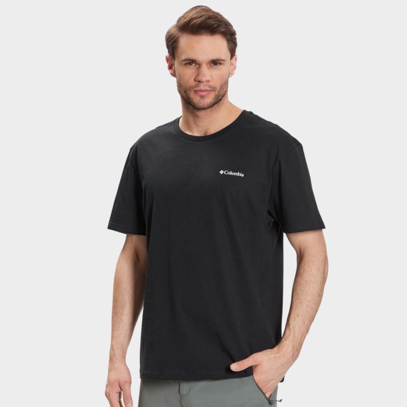 Σύνθεση: 100% οργανικό βαμβάκι Χρώμα: Μαύρο Εφαρμογή: Κανονική Στρογγυλή λαιμόκοψη Λογότυπο Columbia