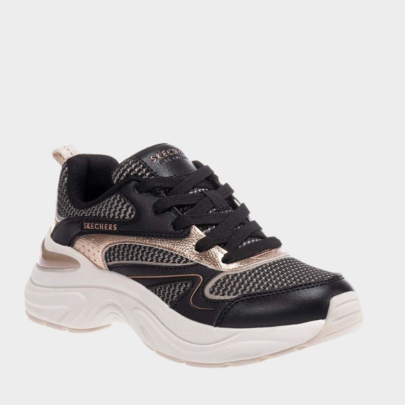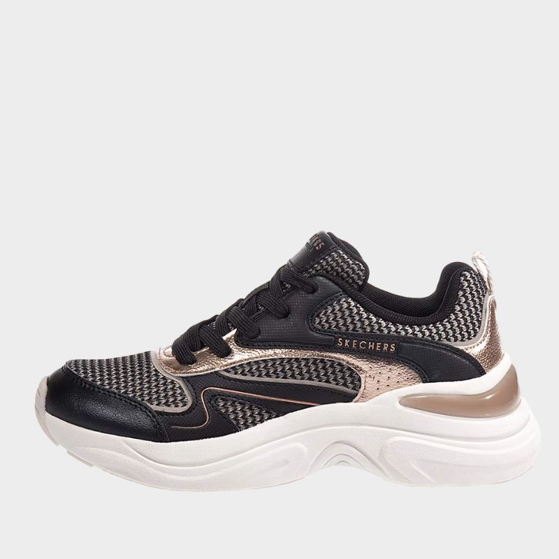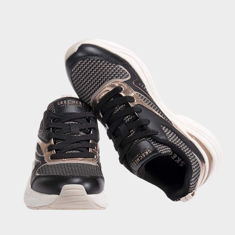 Γυναικεία αθλητικά Skechers με κορδόνια, για σταθερή και προσαρμοσμένη εφαρμογή ιδανικά για περπάτημα ή αθλητικές δραστηριότητες. Σε μαύρο χρώμα με μεταλιζέ λεπτομέρειες συνδυάζονται εύκολα με όλα σας τα ρούχα. Μαλακός πάτος Air Cooled Memory Foam για μέγιστη άνεση στην εφαρμογή.