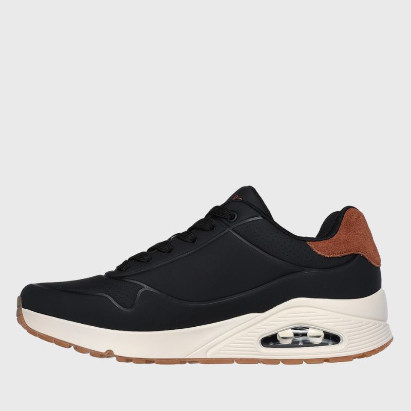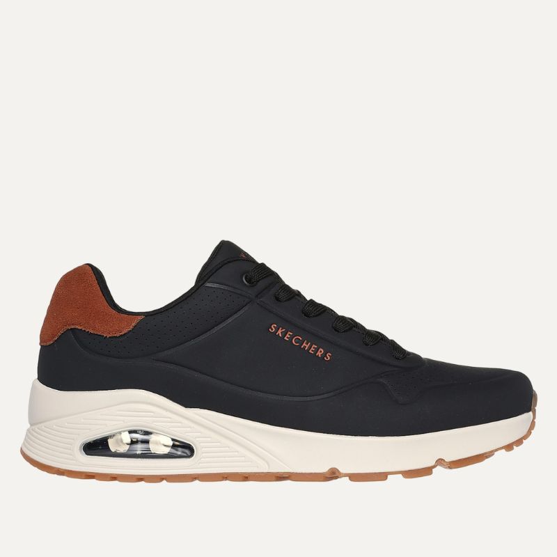 Το Skechers Street™ Uno – Suited On Air συνδυάζει σπορ εκλεπτυσμένο στυλ με άνεση. Διαθέτει ανάγλυφο durabuck στο επάνω μέρος και σουέτ στη φτέρνα, ενώ η εσωτερική σόλα Skechers Air-Cooled Memory Foam® και η ορατή ενδιάμεση σόλα αερόσακου Skech-Air® προσφέρουν εξαιρετική άνεση. Το κλασικό σχέδιο τζόγκερ με κορδόνια, εξωτερική σόλα με ελαστική πρόσφυση ολοκληρώνουν το στυλ, με λεπτομέρεια λογότυπου Skechers®.