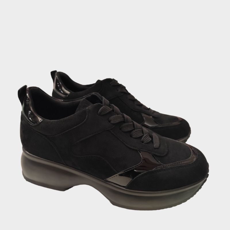 Sneakers της εταιρίας Adam’s με συνθετικό suede σε μαύρο χρώμα, για να το συνδιάζετε με όλα τα ρούχα όπως τζιν ή ακόμα και φούστες και να είστε πάντα σικάτη.