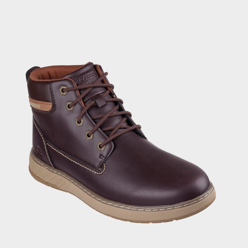 Απόλαυσε μέγιστη άνεση και στήριξη στο περπάτημα με τα SKECHERS GARLAN-DENO. Κομψό, casual μποτάκι, σε καφέ χρώμα, με στυλ και άνεση. Τα κορδόνια βοηθούν την εύκολη εφαρμογή, ενώ χάρη στο κομψό σχεδιασμό του, μπορείτε να το φορέσετε ακόμα και με το κοστούμι σας. Η άνεση της εταιρείας, και τον εσωτερικό μαλακό πάτο Air-Cooled Memory Foam, θα σας κάνει φανατικό οπαδό των Skechers για όλες τις ώρες της ημέρας, κάθε μέρα, ακόμα και τις βροχερές ημέρες, καθώς είναι πλήρως αδιάβροχο, 100% Waterproof. Η άνεση του αθλητικού, τώρα και casual παπούτσια για όλες τις ώρες της ημέρας.