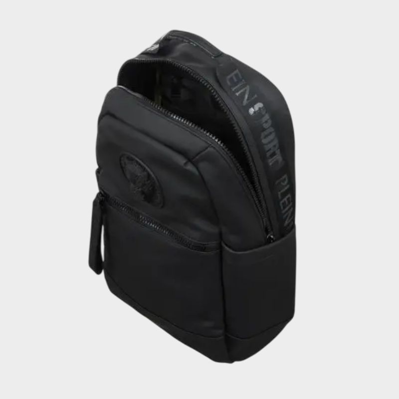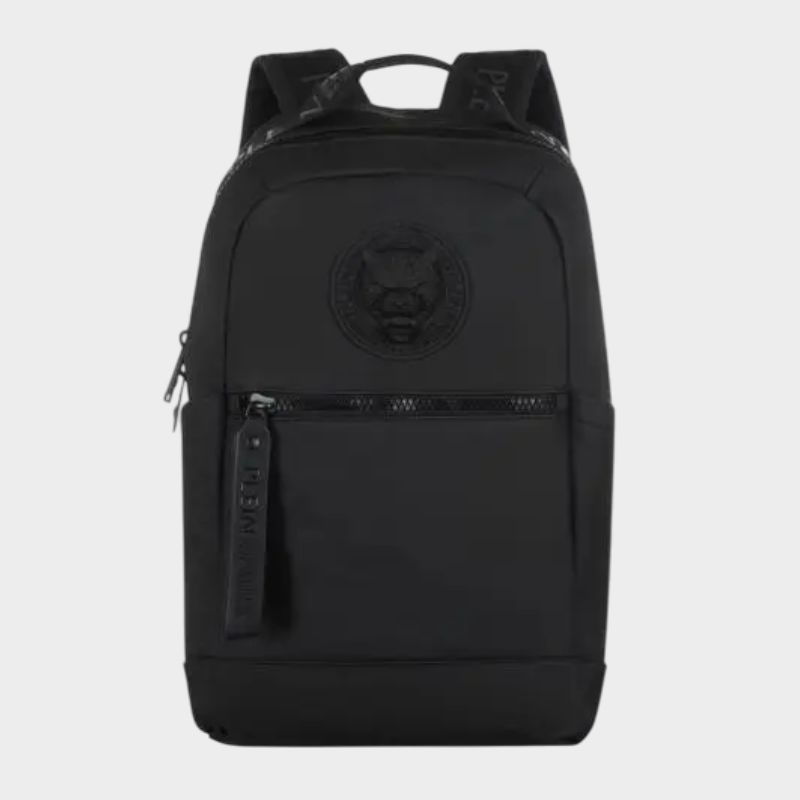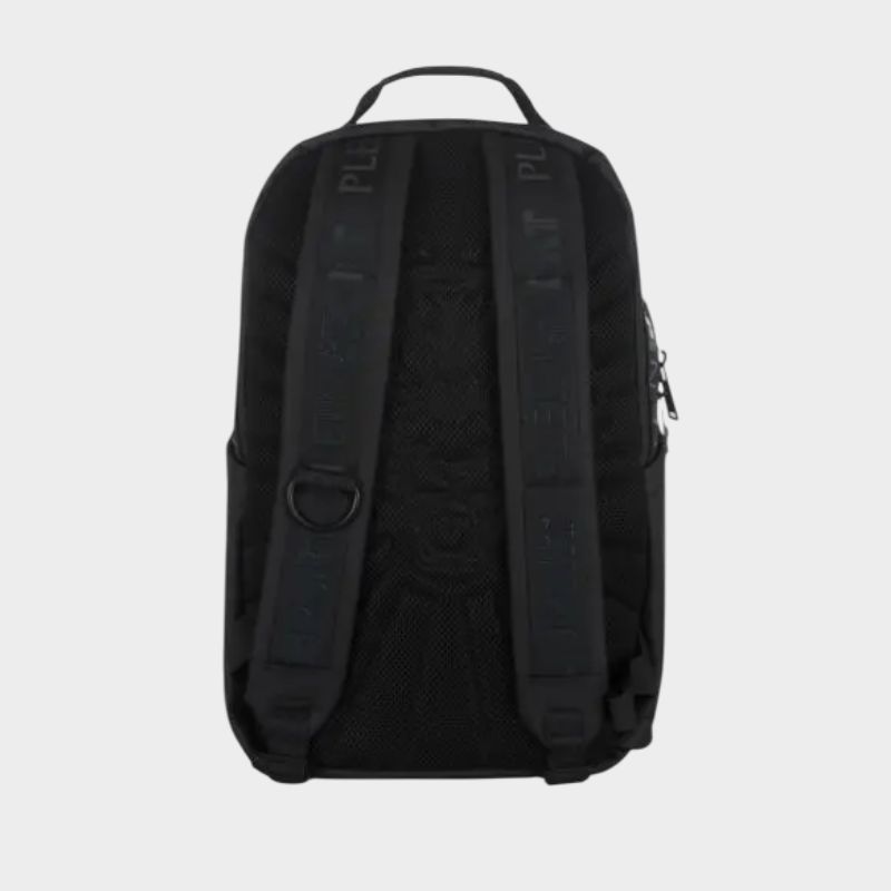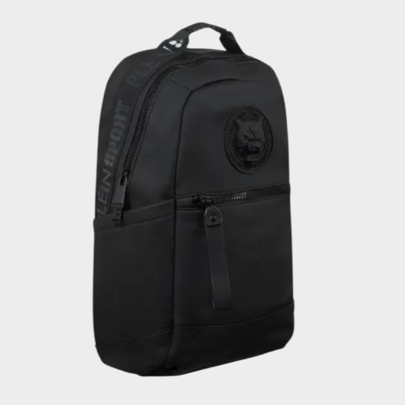 PLEIN SPORT σακίδιο πλάτης από ανθεκτικό συνθετικό υλικό, με κύριο διαμέρισμα και μπροστινή τσέπη. Περιλαμβάνει πλαϊνές τσέπες για μπουκάλια, εσωτερική θήκη για laptop ή tablet και δύο θήκες για στυλό. Κλείνει με φερμουάρ, είναι κατάλληλο για Α4 και διαθέτει χειρολαβή και ρυθμιζόμενους ιμάντες.