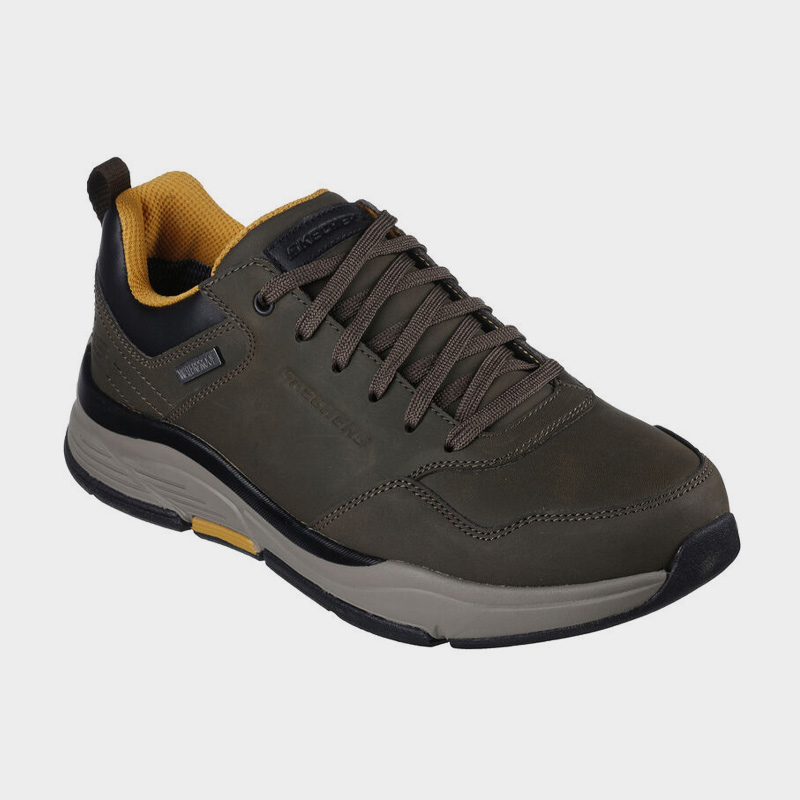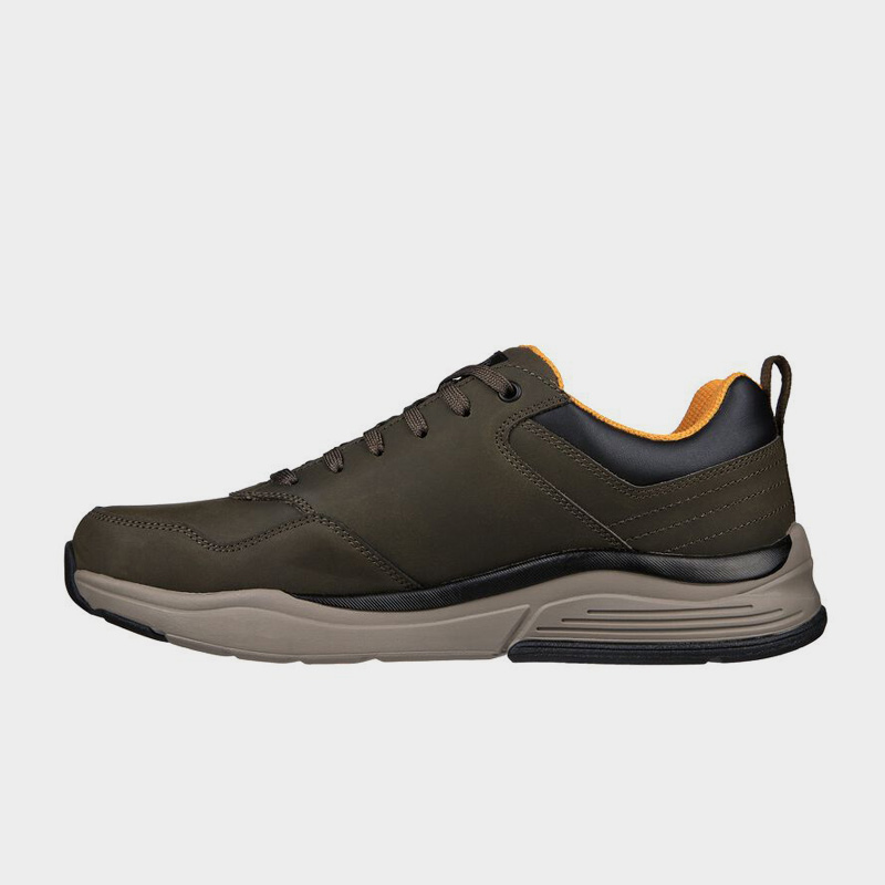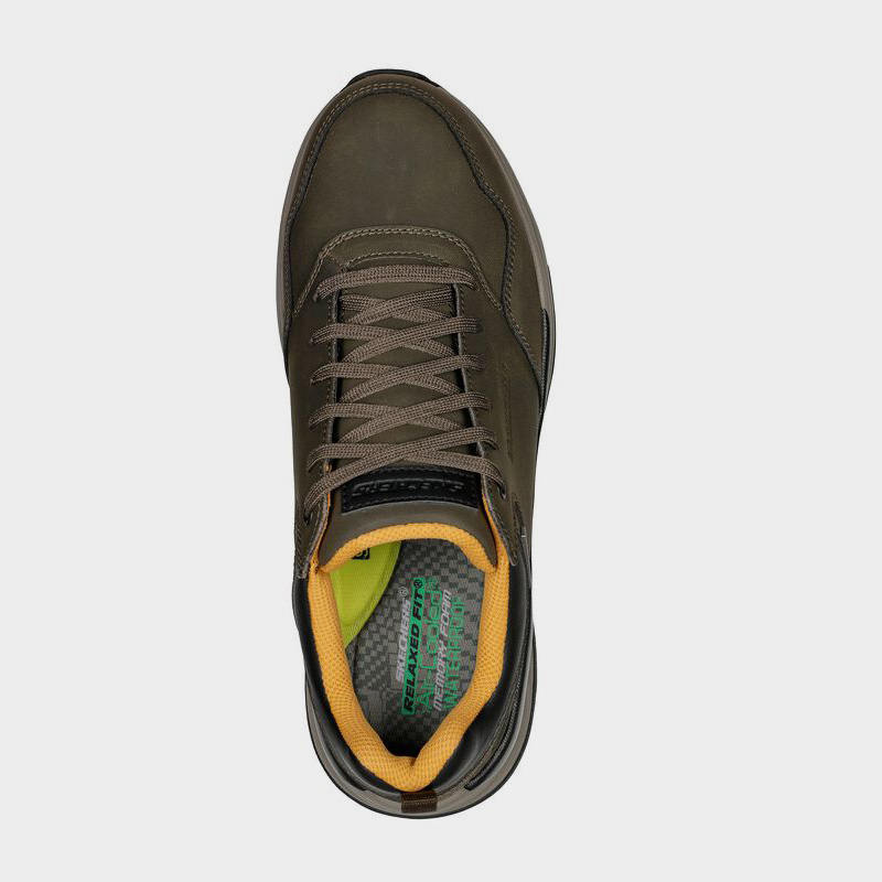 Sneaker της Skecher με άνω μέρος με απαλό, αδιάβροχο δέρμα επεξεργασμένο με λάδι σε λαδί χρώμα. Διαθέτει μαλακό εσωτερικό πάτο Air Cooled Memory Foam και ενδιάμεση σόλα που απορροφά τους κραδασμούς. Ένα άνετο και κομψό παπούτσι τύπου oxford κατάλληλο για κάθε μέρα.