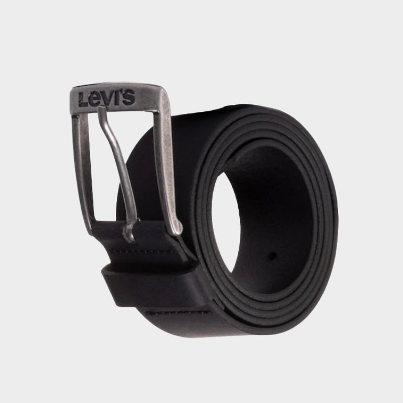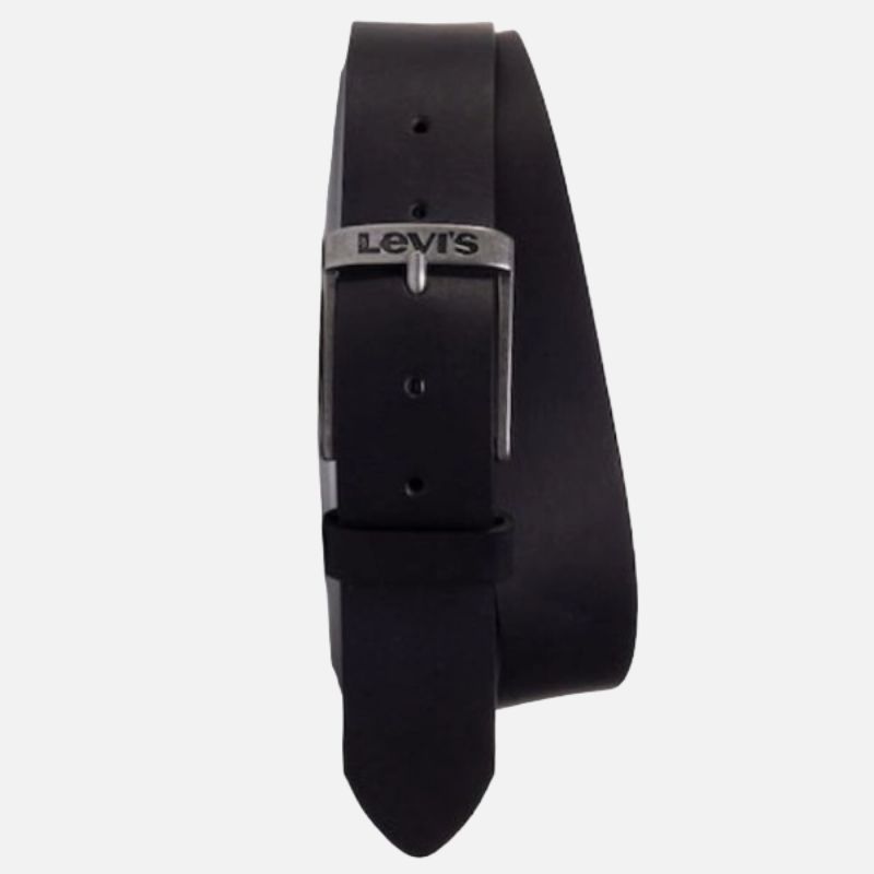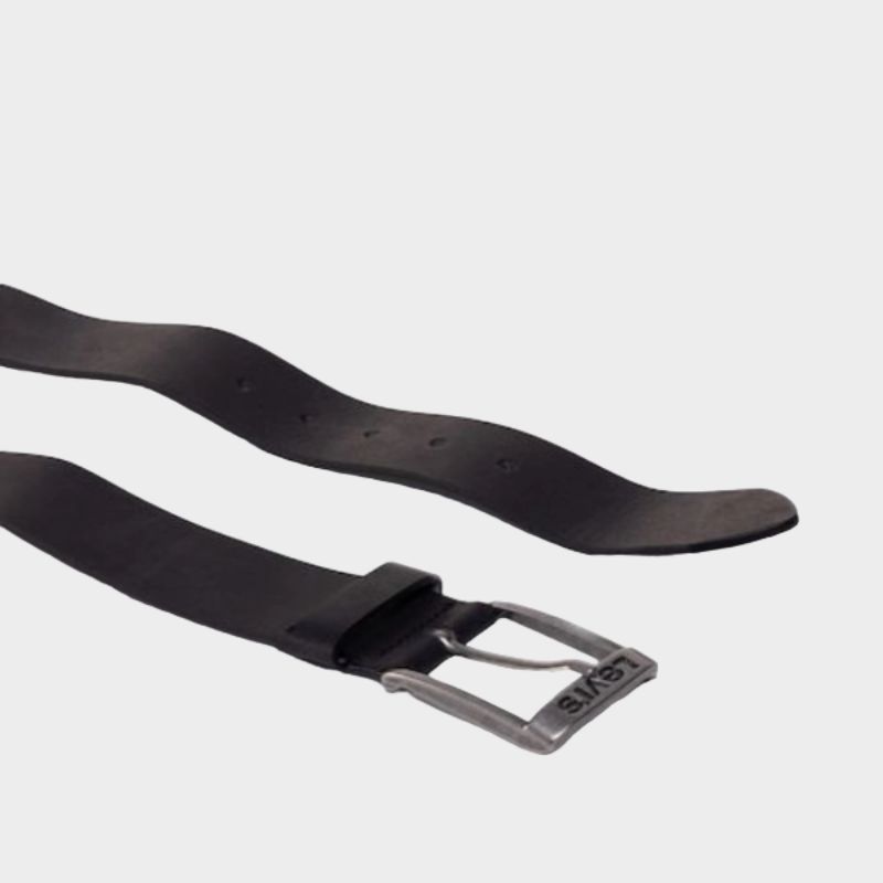 Ζώνη Levi’s από γνήσιο δέρμα σε μαύρο χρώμα. Το σχέδιο ολοκληρώνεται με τετράγωνη αγκράφα και ανάγλυφο λογότυπο της εταιρίας