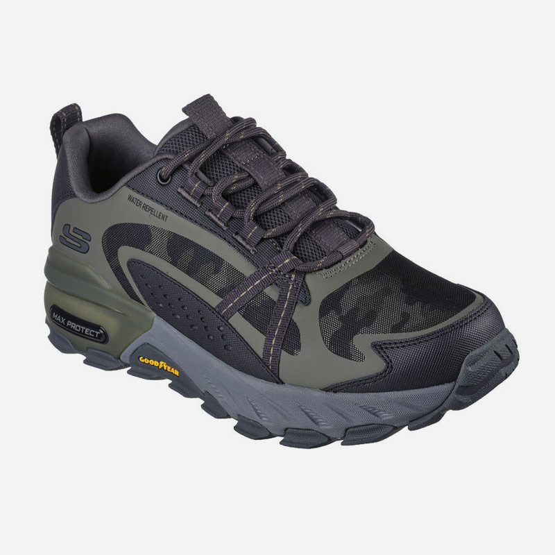 Τα Skechers Max Protect – Task Force είναι άνετα και ανθεκτικά παπούτσια για εξωτερική χρήση, με ύφασμα και οικολογικό δέρμα στο επάνω μέρος, εσωτερική σόλα Air-Cooled Memory Foam® και αντιολισθητική εξωτερική σόλα Goodyear®.
