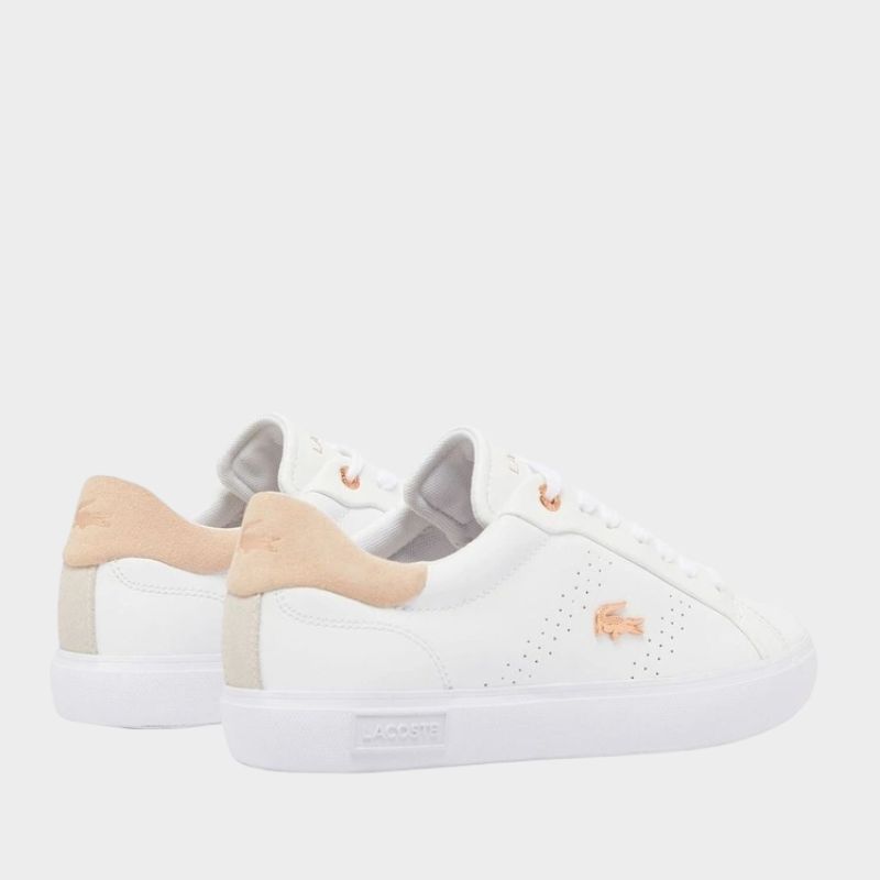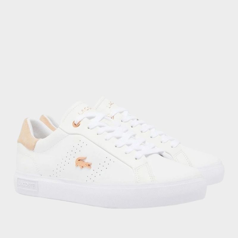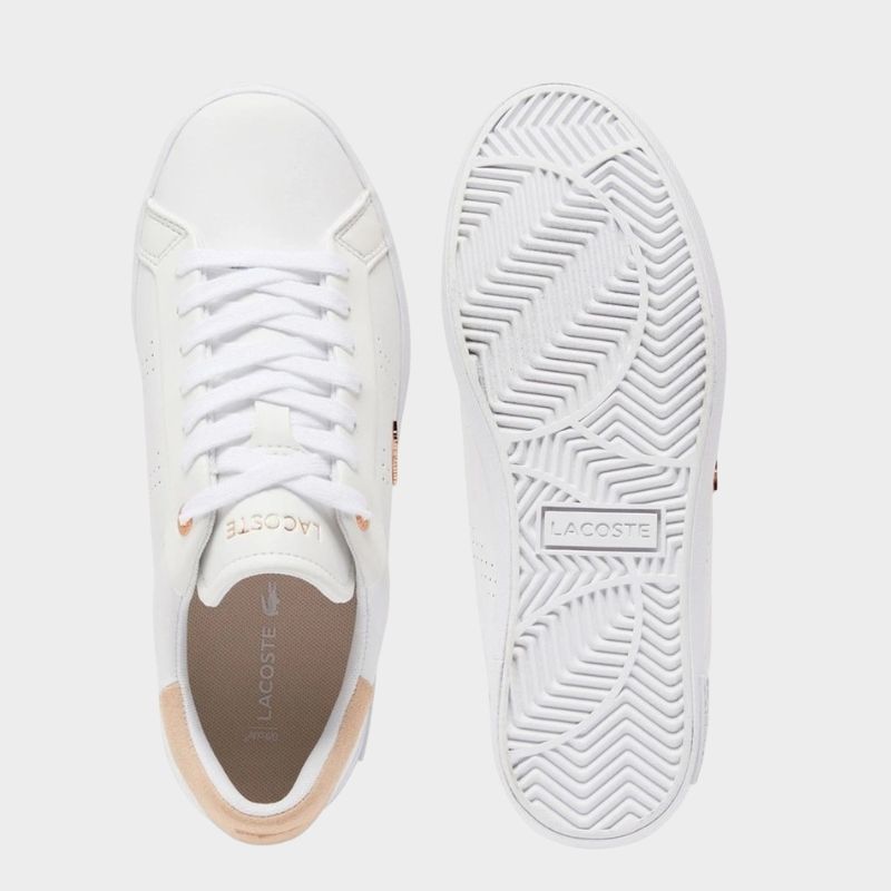 Sneaker της Lacoste από γνήσιο δέρμα σε χρώμα λευκό με μεταλλικές rose gold και μπεζ λεπτομέρειες