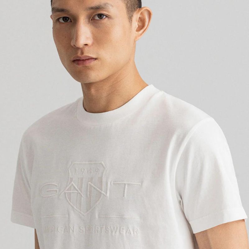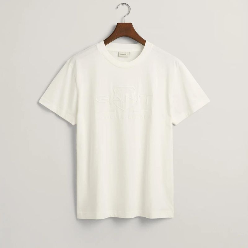 Σύνθεση: 100% βαμβάκι Χρώμα: Εκρού Εφαρμογή: Κανονική Στρόγγυλη λαιμόκοψη Κεντημένο το λογότυπο μπροστά