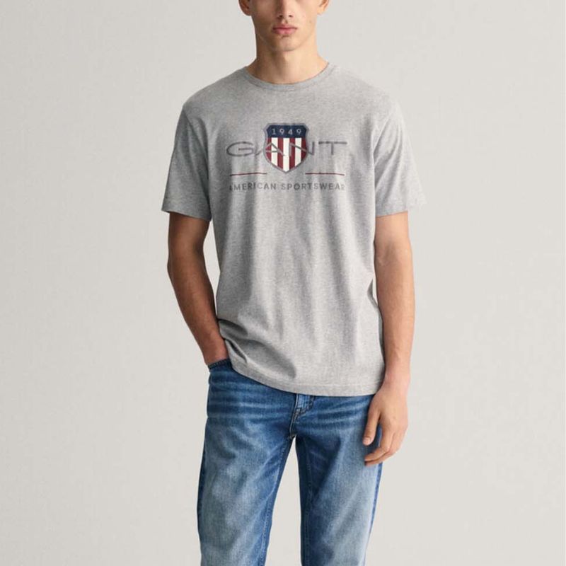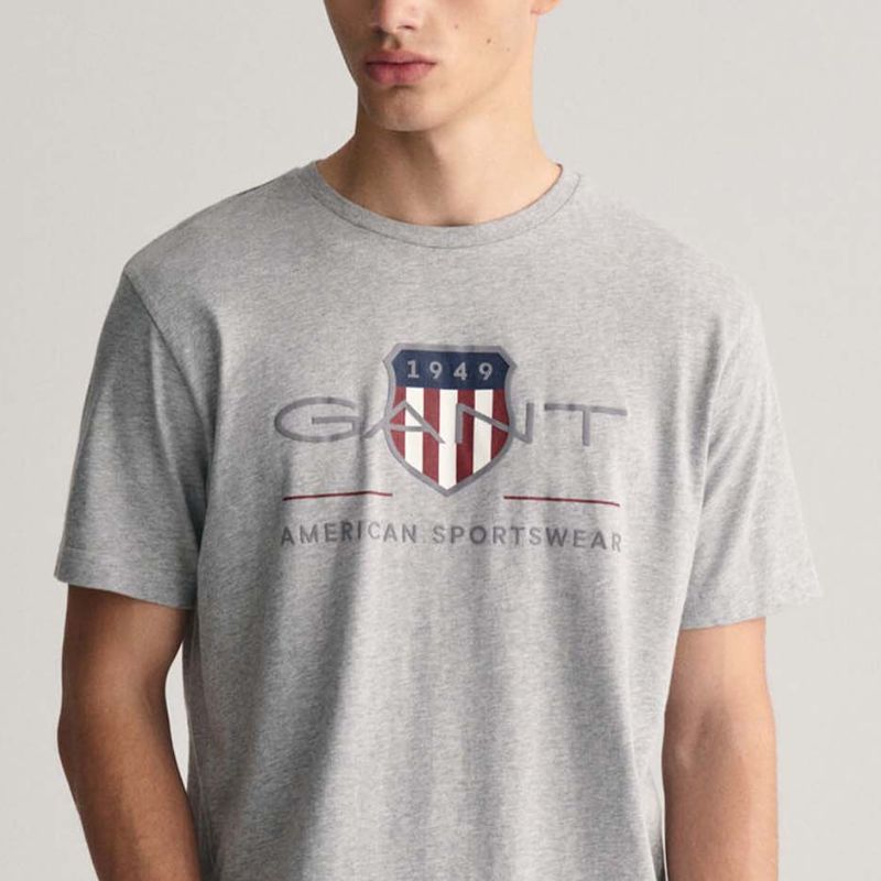 Σύνθεση: 100% βαμβάκι Χρώμα: Γκρι Εφαρμογή: Κανονική Στρογγυλή λαιμόκοψη Λογότυπο Gant στο μπροστινό μέρος