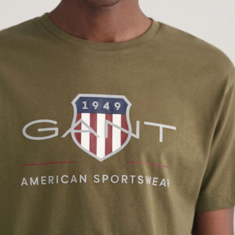 Σύνθεση: 100% βαμβάκι Χρώμα: Πράσινο Εφαρμογή: Κανονική Στρογγυλή λαιμόκοψη Λογότυπο Gant στο μπροστινό μέρος