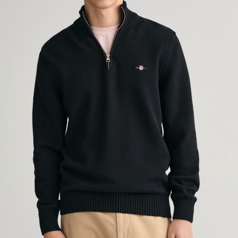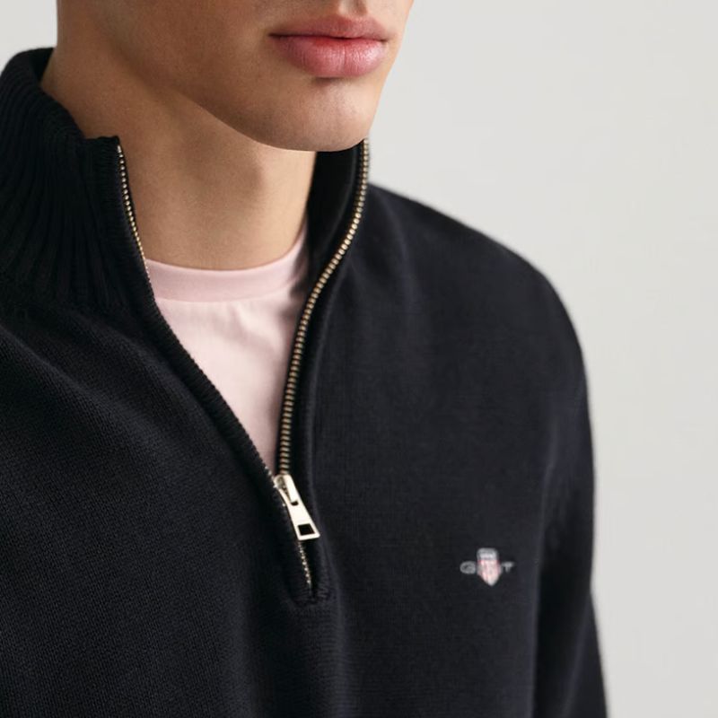 Σύνθεση: 100% Βαμβάκι Χρώμα: Μαύρο Εφαρμογή: Κανονική Μακρύ Μανίκι Φερμουάρ στη λαιμόκοψη Rib μανσέτες & τελείωμα Κέντημα λογότυπου Gant στο στήθος