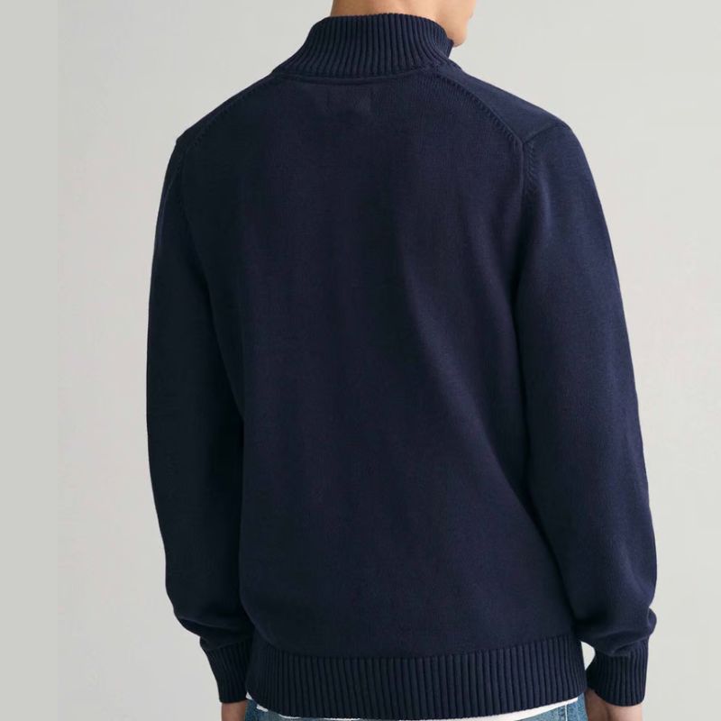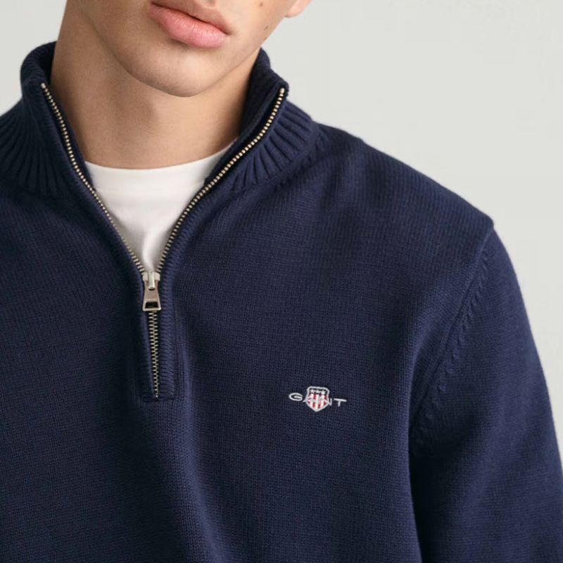 Σύνθεση: 100% Βαμβάκι Χρώμα: Μπλε Εφαρμογή: Κανονική Μακρύ Μανίκι Φερμουάρ στη λαιμόκοψη Rib μανσέτες & τελείωμα Κέντημα λογότυπου Gant στο στήθος