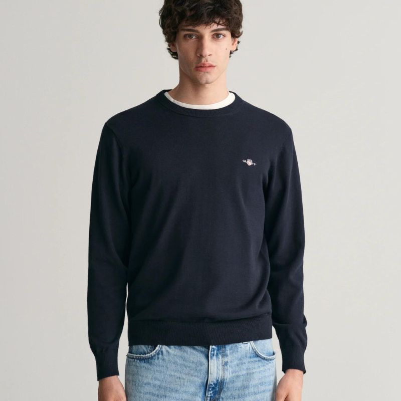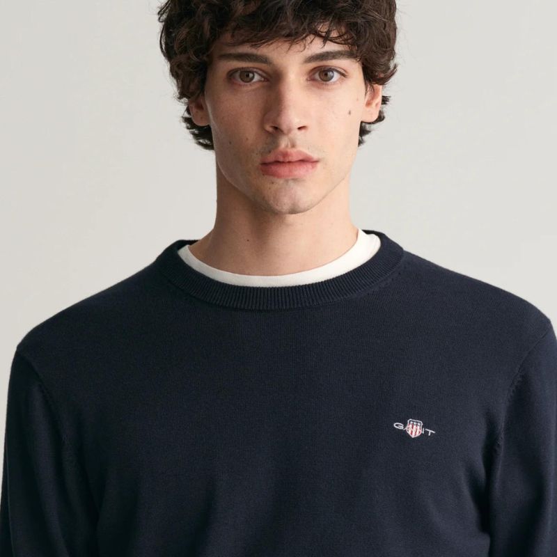 Σύνθεση: 100% βαμβάκι Χρώμα: Σκούρο Μπλε Εφαρμογή: Κανονική Στρογγυλή λαιμόκοψη Rib μανσέτες και τελείωμα Κεντημένο λογότυπο Gant στο στήθος