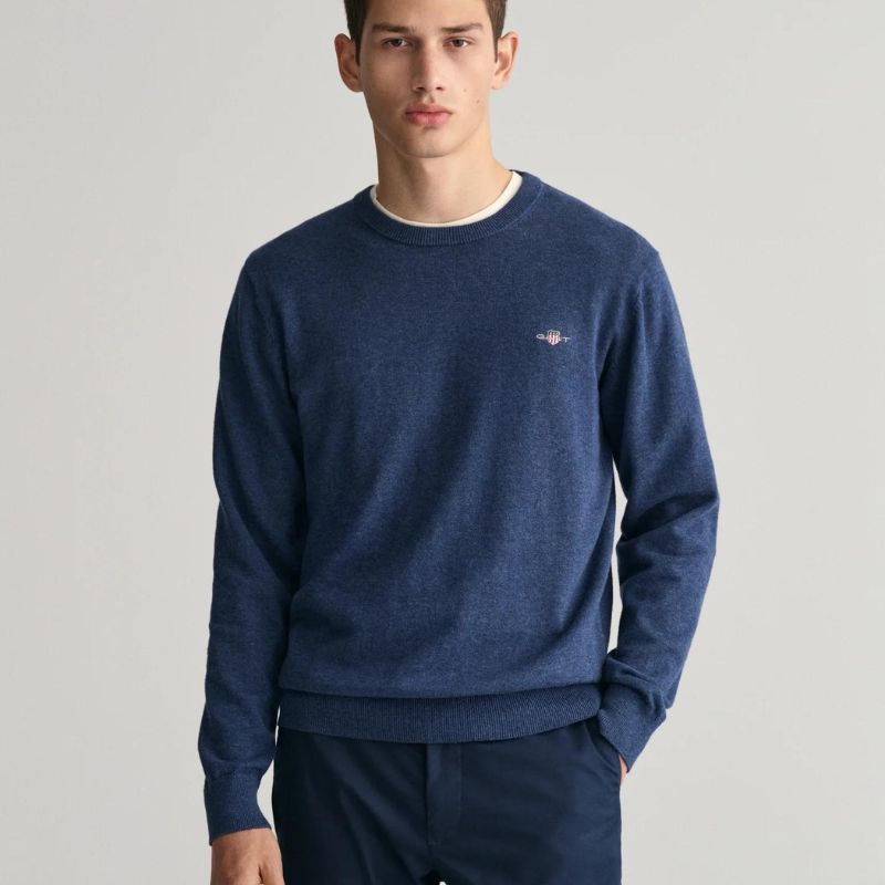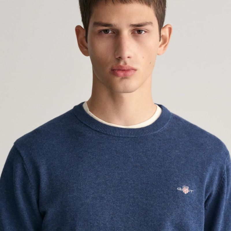 Σύνθεση: 100% βαμβάκι Χρώμα: Μπλε Εφαρμογή: Κανονική Στρογγυλή λαιμόκοψη Rib μανσέτες και τελείωμα Κεντημένο λογότυπο Gant στο στήθος