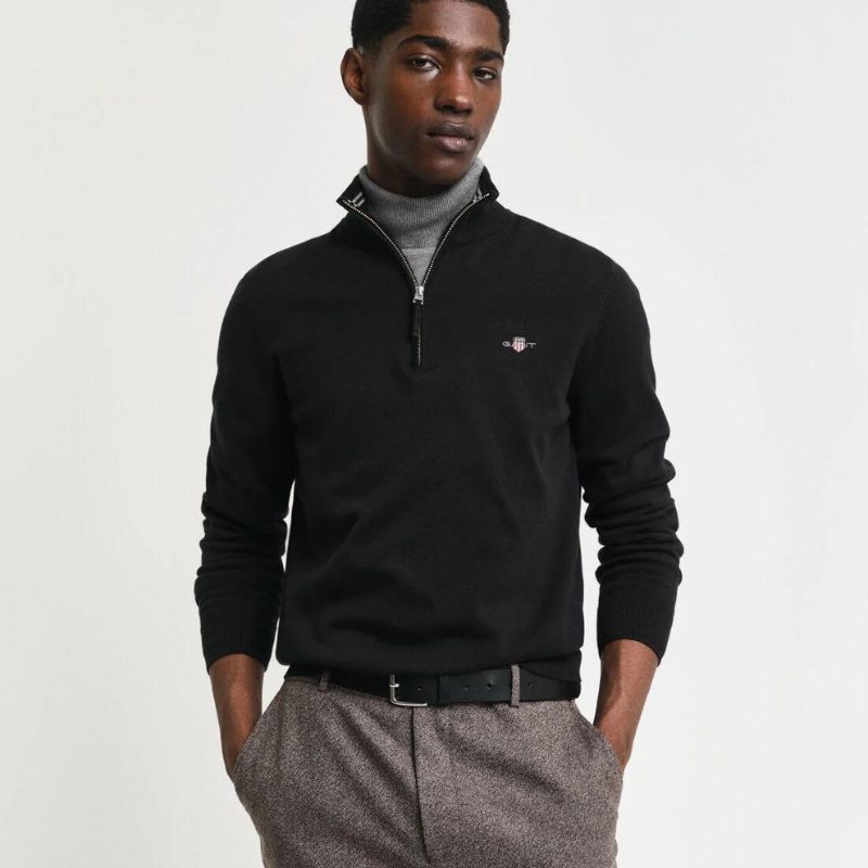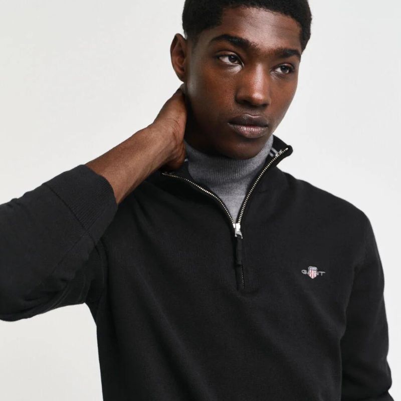 Σύνθεση: 100% βαμβάκι Χρώμα: Μαύρο Εφαρμογή: Κανονική Γιακάς με μισό φερμουάρ Ριπ λεπτομέρειες Λογότυπο Gant στο στήθος