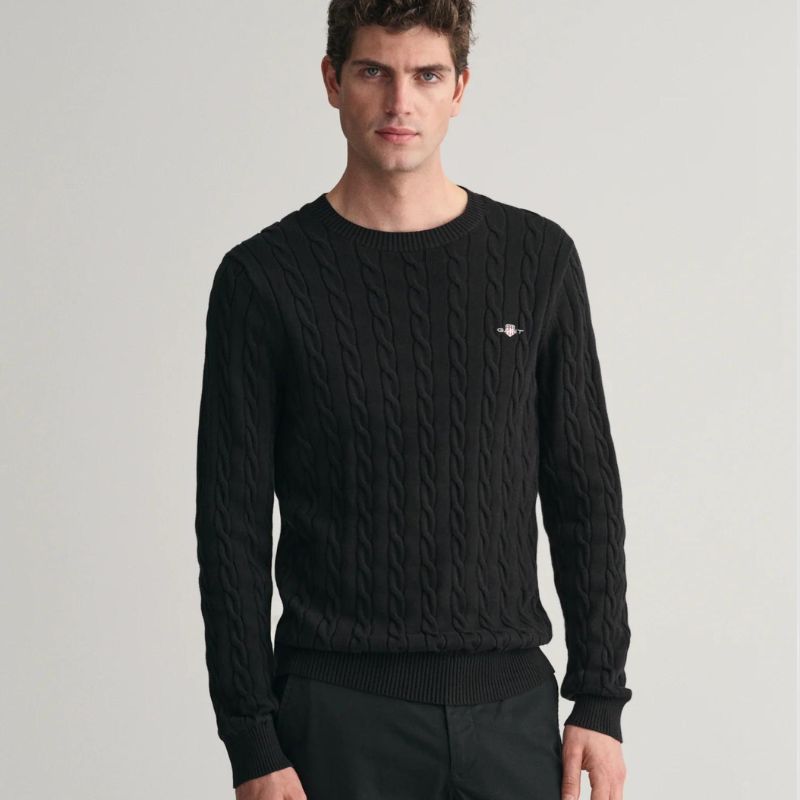 Σύνθεση: 100% Βαμβάκι Χρώμα: Μαύρο Εφαρμογή: Κανονική Με σχέδιο πλεξούδα Λογότυπο Gant στο στήθος