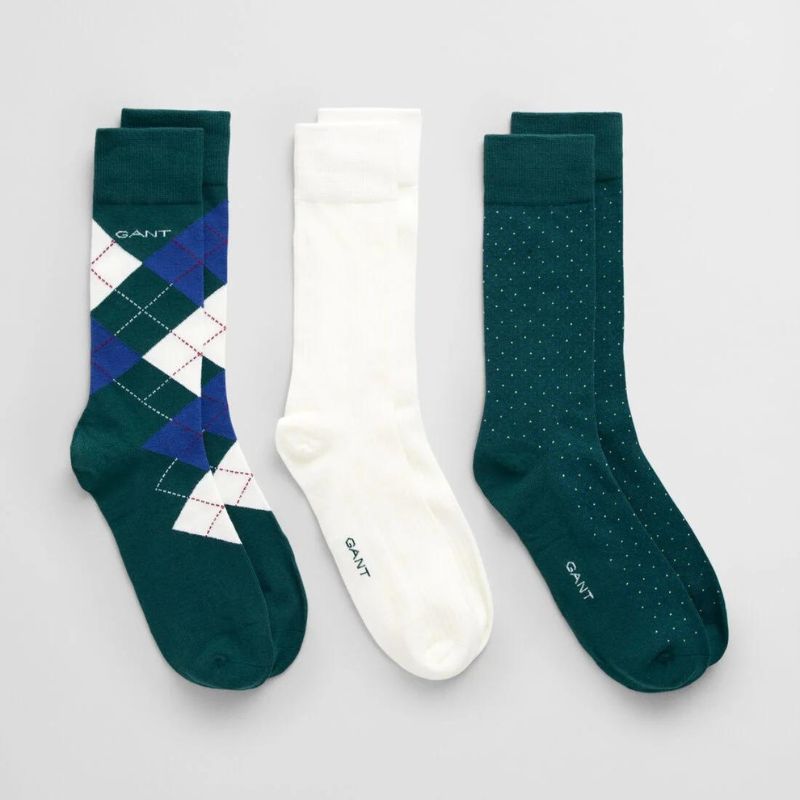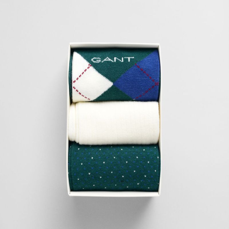 Κατασκευασμένες από μείγμα βαμβακιού εξαιρετικής ποιότητας, αυτές οι κάλτσες έχουν πολυτελή αίσθηση απαλότητας. Παρουσιάζεται σε συσκευασία δώρου, αυτό το πακέτο περιλαμβάνει ένα ζευγάρι με ραβδώσεις, ένα ζευγάρι με κουκκίδες και ένα ζευγάρι με μοτίβο argyle. Όλες οι κάλτσες διαθέτουν λογότυπο GANT intarsia στον αστράγαλο ή στο πέλμα.