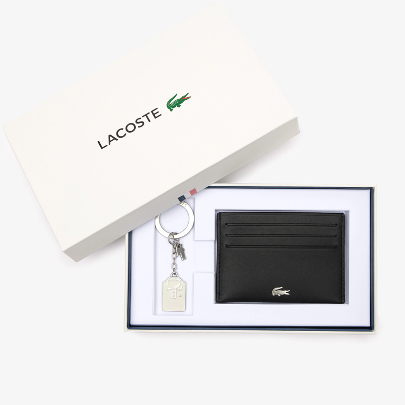 Σετ δώρου που περιλαμβάνει καρτοθήκη και μπρελόκ της Lacoste σε μαύρο χρώμα