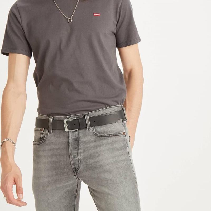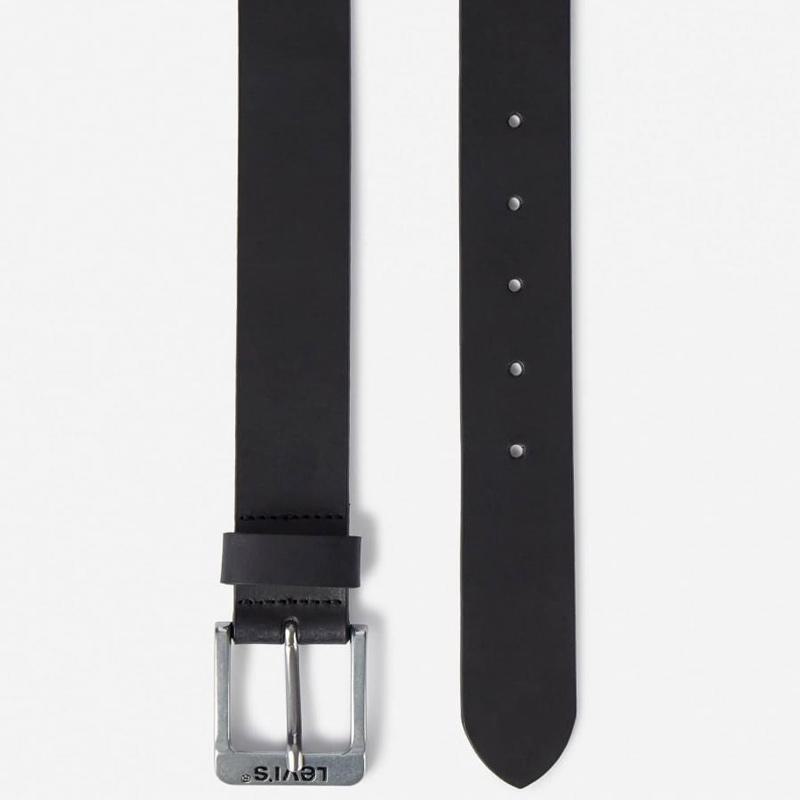 Δερμάτινη ζώνη Levi’s από γνήσιο δέρμα σε μαύρο χρώμα. Το σχέδιο ολοκληρώνεται με τετράγωνη αγκράφα και ανάγλυφο λογότυπο της εταιρίας.