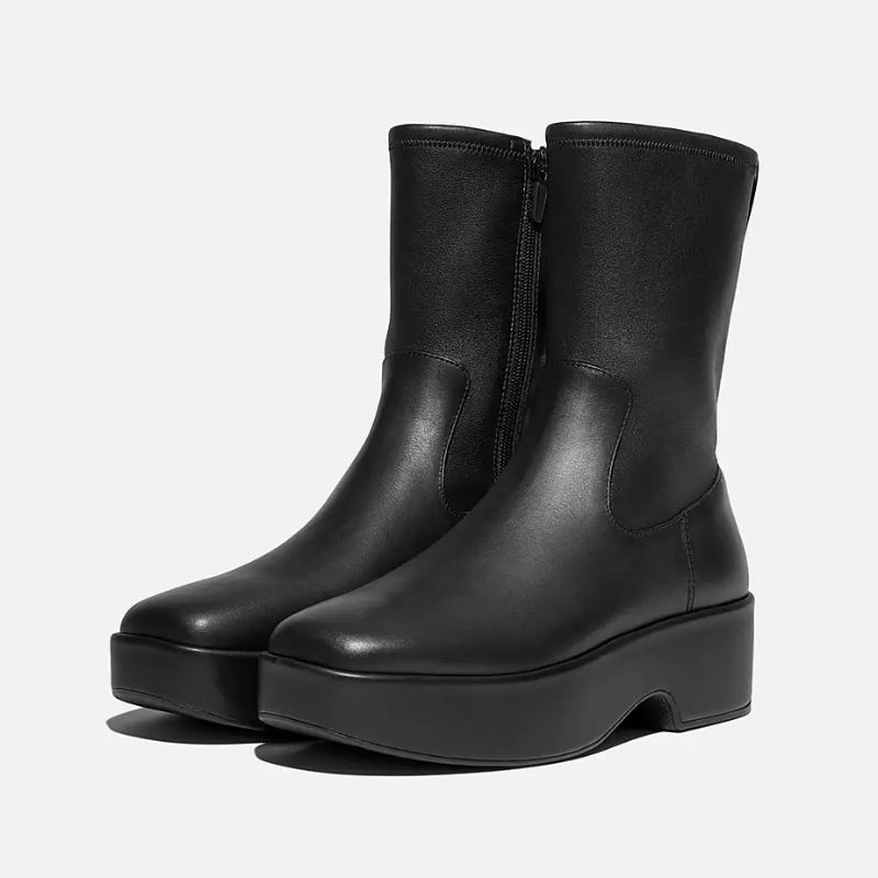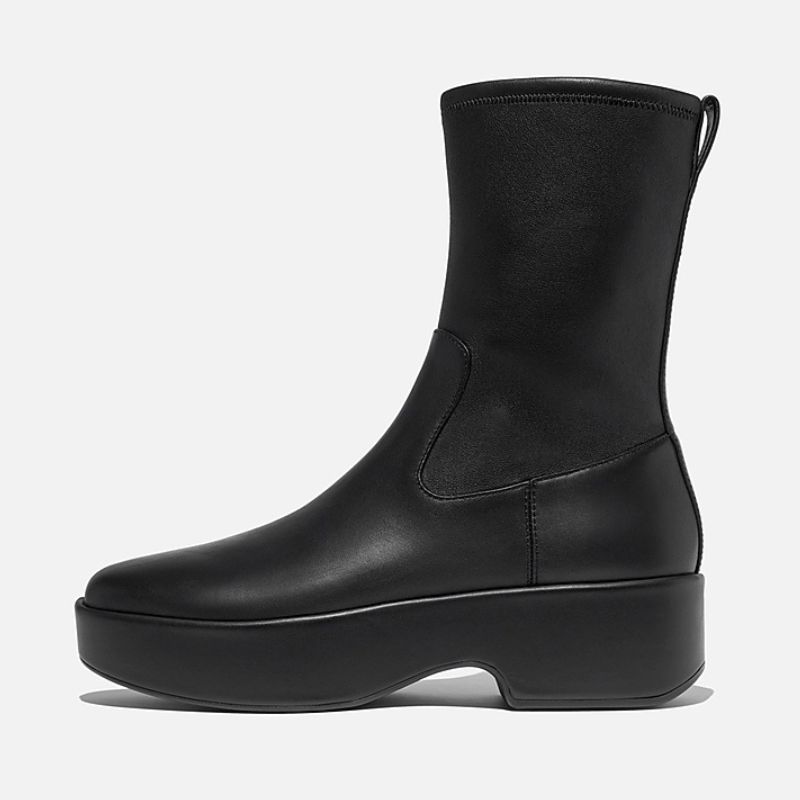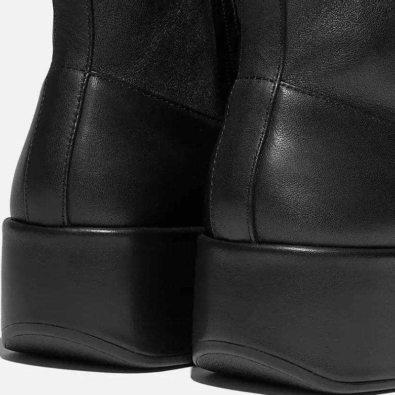 Κατασκευασμένα από πολυτελές δέρμα παντού, χρησιμοποιώντας ελαστικό δέρμα νάπα στον άξονα για κομψή εφαρμογή. Με ελαφρώς τετράγωνο δάχτυλο, ευέλικτο μήκος στο μέσο της γάμπας και δερμάτινη σόλα. Εύκολα στην εφαρμογή χάρη στο εσωτερικό φερμουάρ. Σε μια demi-wedge έκδοση της ενδιάμεσης σόλας Microwobbleboard™ για εξαιρετική άνεση (και λίγο επιπλέον ύψος).