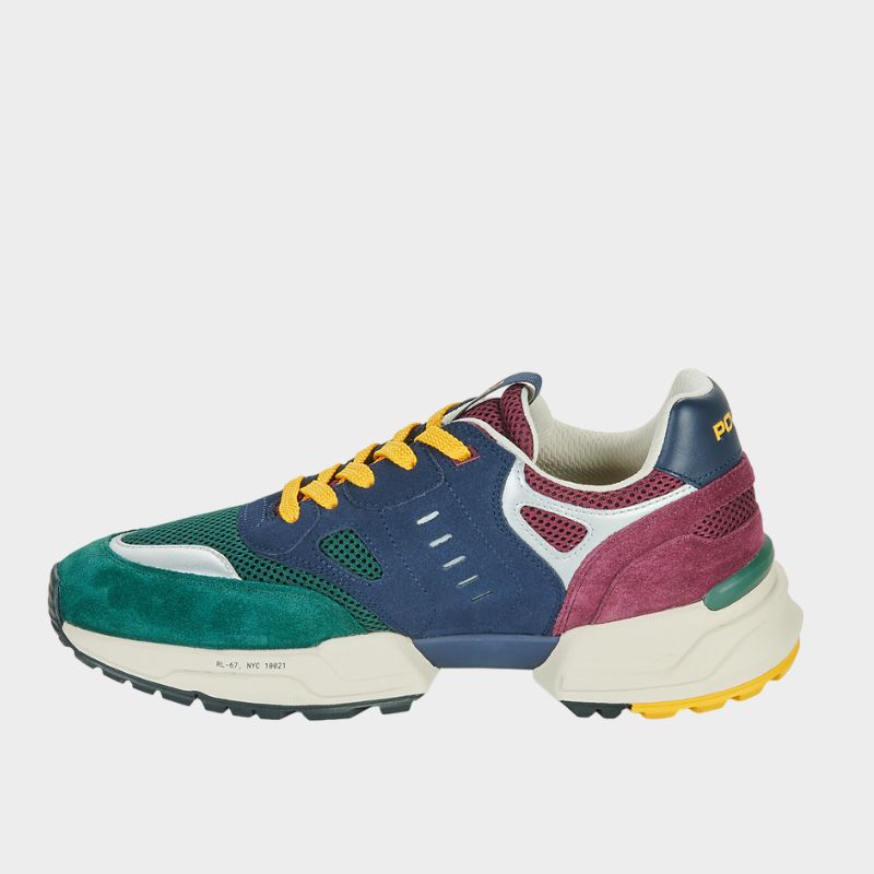 Το παπούτσι διαθέτει επένδυση από suede και πλέγμα, με δερμάτινες λεπτομέρειες και στρογγυλεμένο μπροστινό μέρος. Το χαρακτηριστικό λογότυπο Signature Pony βρίσκεται στο πλάι, ενώ στη γλώσσα και τη φτέρνα υπάρχει στάμπα Polo. Tο εσωτερικό έχει διχτυωτή επένδυση και πάτος είναι κατασκευασμένος από EVA και η εξωτερική σόλα από καουτσούκ.