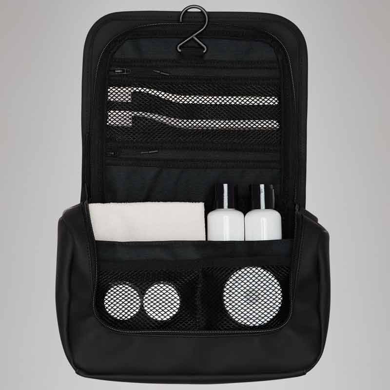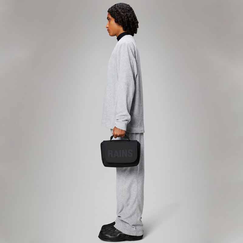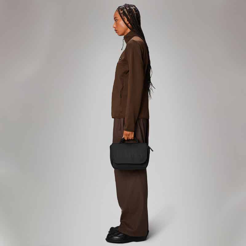 Το Texel Wash Bag είναι ένα πρακτικό νεσεσέρ, ιδανικό για τα απαραίτητα του μπάνιου. Με διπλό φερμουάρ που ανοίγει σε μια κύρια θήκη, διαθέτει δύο τσέπες ολίσθησης και μια ελαστική ταινία για μικρά μπουκάλια ταξιδιού. Το διπλωμένο κάλυμμα περιλαμβάνει δύο τσέπες με φερμουάρ και μια πτυσσόμενη κρεμάστρα, επιτρέποντας την ανάρτηση της τσάντας για εύκολη πρόσβαση. Ο σχεδιασμός ολοκληρώνεται με επενδυμένη λαβή μεταφοράς. Κατάλληλη για οργάνωση σε τσάντα ή βαλίτσα, η Texel Wash Bag είναι κατασκευασμένη από αδιάβροχο ύφασμα PU της Rains για αντοχή και απαλή αίσθηση.