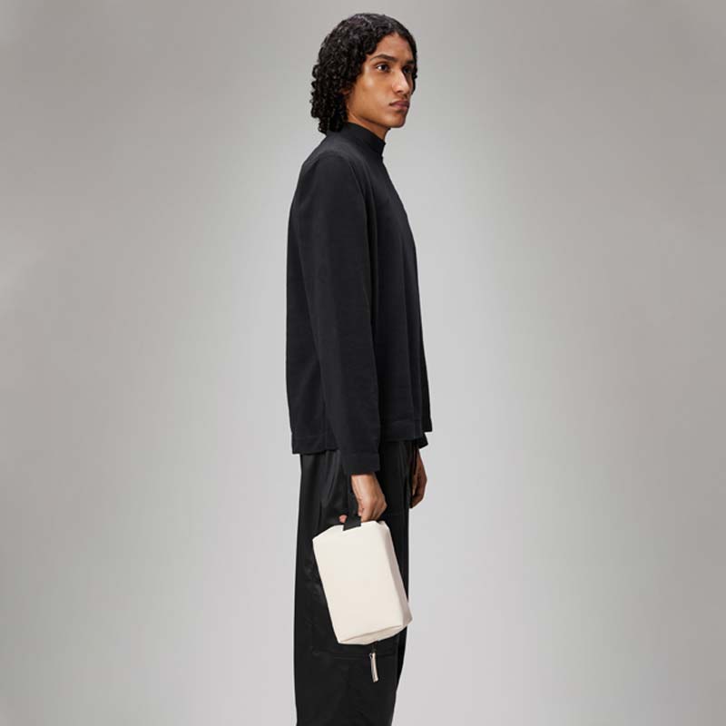 Το Wash Bag Small είναι ένα μινιμαλιστικό σχέδιο που διαθέτει ένα ενιαίο διαμέρισμα αρκετά μεγάλο για να χωράει τα απαραίτητα προϊόντα περιποίησης. Η αδιάβροχη σχεδίαση είναι φινιρισμένη με επικαλυμμένο φερμουάρ και λαβή μεταφοράς με ιμάντες. Το Wash Bag Small είναι κομμένο σε αδιάβροχο ύφασμα PU με την υπογραφή της Rains, σχεδιασμένο για αντοχή, ανθεκτικότητα και απαλή αίσθηση.