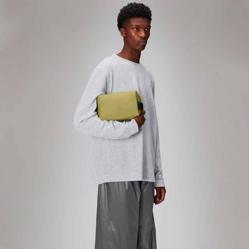 Το Wash Bag Small είναι ένα μινιμαλιστικό σχέδιο που διαθέτει ένα ενιαίο διαμέρισμα αρκετά μεγάλο για να χωράει τα απαραίτητα προϊόντα περιποίησης. Η αδιάβροχη σχεδίαση είναι φινιρισμένη με επικαλυμμένο φερμουάρ και λαβή μεταφοράς με ιμάντες. Το Wash Bag Small είναι κομμένο σε αδιάβροχο ύφασμα PU με την υπογραφή της Rains, σχεδιασμένο για αντοχή, ανθεκτικότητα και απαλή αίσθηση.