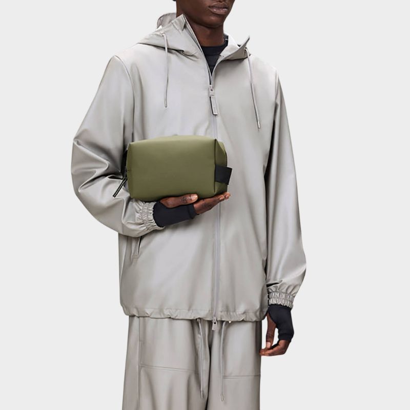 Το Wash Bag Small είναι ένα μινιμαλιστικό σχέδιο που διαθέτει ένα ενιαίο διαμέρισμα αρκετά μεγάλο για να χωράει τα απαραίτητα προϊόντα περιποίησης. Η αδιάβροχη σχεδίαση είναι φινιρισμένη με επικαλυμμένο φερμουάρ και λαβή μεταφοράς με ιμάντες. Το Wash Bag Small είναι κομμένο σε αδιάβροχο ύφασμα PU με την υπογραφή της Rains, σχεδιασμένο για αντοχή, ανθεκτικότητα και απαλή αίσθηση.