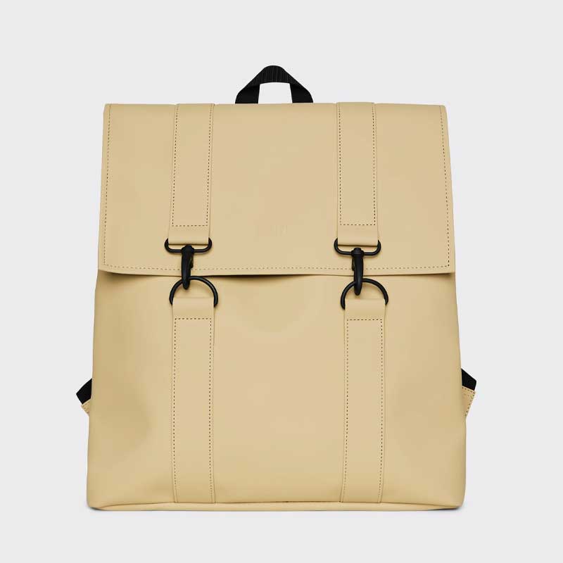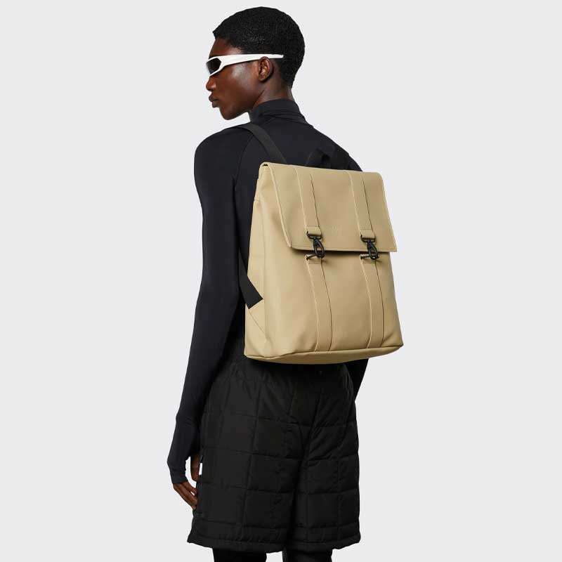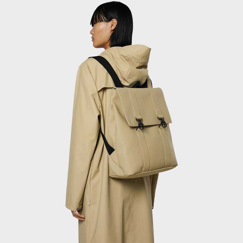 Από το 2012 η Rains πρωτοπορεί, συνδυάζοντας το σκανδιναβικό σχέδιο με την καθημερινή χρηστικότητα και κατασκευάζοντας τα πιο ξακουστά αδιάβροχα σακίδια στον κόσμο. Η τσάντα Rains MSN ερμηνεύει ξανά το κλασικό σχολικό σακίδιο και το εντάσσει στην σύγχρονη αστική ντουλάπα. Τα σημεία εστίασης για αυτήν την κατά τα άλλα μινιμαλιστική σιλουέτα αποτελούν οι διπλοί ιμάντες και το χαρακτηριστικό κλείσιμο με καραμπίνερ (άγκιστρο). Το σακίδιο είναι κομμένο σε αδιάβροχο ύφασμα PU με την υπογραφή της Rains, σχεδιασμένο για αντοχή, ανθεκτικότητα και απαλή αίσθηση.