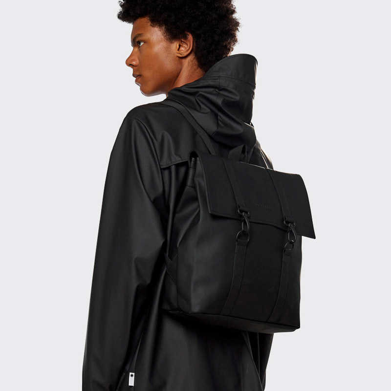 Από το 2012 η Rains πρωτοπορεί, συνδυάζοντας το σκανδιναβικό σχέδιο με την καθημερινή χρηστικότητα και κατασκευάζοντας τα πιο ξακουστά αδιάβροχα σακίδια στον κόσμο. Η τσάντα Rains MSN Mini ερμηνεύει ξανά το κλασικό σχολικό σακίδιο και το εντάσσει στην σύγχρονη αστική ντουλάπα. Τα σημεία εστίασης για αυτήν την κατά τα άλλα μινιμαλιστική σιλουέτα αποτελούν οι διπλοί ιμάντες και το χαρακτηριστικό κλείσιμο με καραμπίνερ (άγκριστρο). Το σακίδιο είναι κομμένο σε αδιάβροχο ύφασμα PU με την υπογραφή της Rains, σχεδιασμένο για αντοχή, ανθεκτικότητα και απαλή αίσθηση.