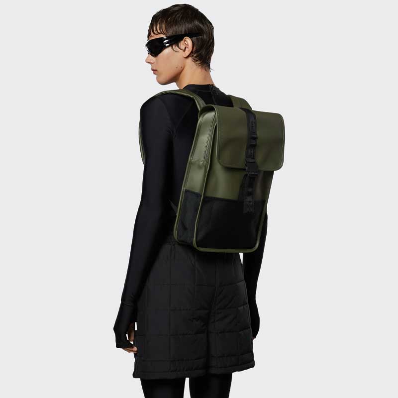 Το Trail Backpack Mini είναι εμπνευσμένο από το κλασικό σακίδιο της Rains. Η σχεδίαση χαρακτηρίζεται από το εξέχον καπάκι και τον κεντρικό ιμάντα με την πόρπη. Αυτό το μοντέρνο και αδιάβροχο σακίδιο πλάτης διαθέτει εσωτερική τσέπη για φορητό υπολογιστή, ευρύχωρη κύρια θήκη και διχτυωτή επένδυση στο πίσω μέρος.