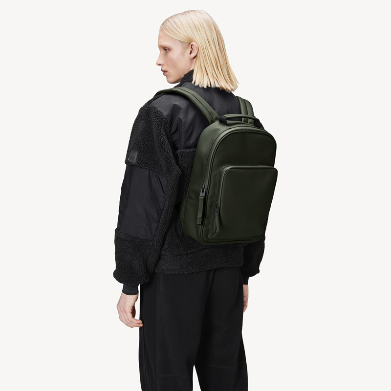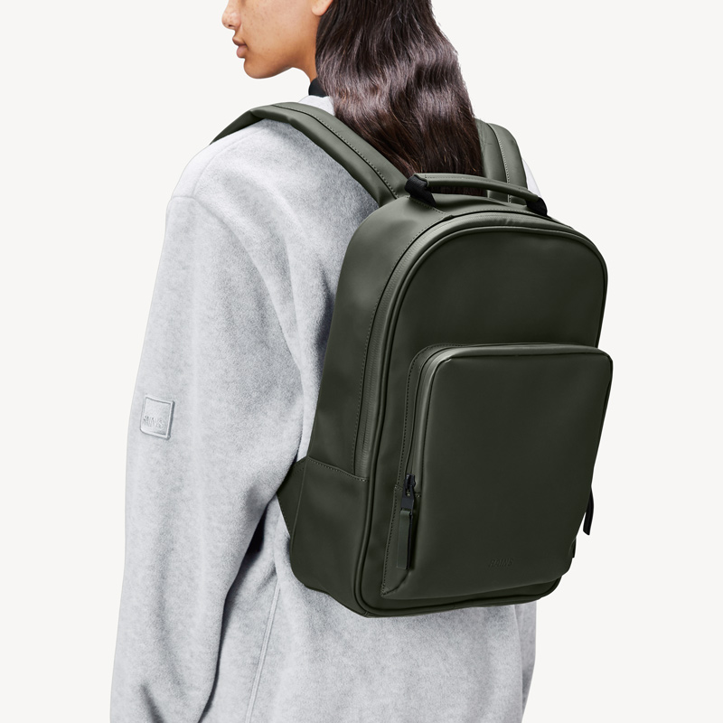Το Book Daypack είναι μια αδιάβροχη τσάντα πλάτης με μινιμαλιστική σχεδίαση. Διαθέτει ευρύχωρη κύρια θήκη, θήκη για φορητό υπολογιστή και ρυθμιζόμενους ιμάντες πλάτης. Είναι κατασκευασμένο από το χαρακτηριστικό αδιάβροχο ύφασμα PU της Rains, σχεδιασμένο για αντοχή, ανθεκτικότητα και απαλή αίσθηση.
