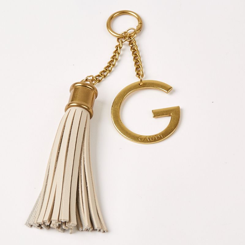 Διακοσμητικό μπρελόκ από οικολογικό δέρμα εξαιρετικής ποιότητας με το χρυσό μονόγραμμα της Gaudi. Μπορεί να διακοσμήσει τα κλειδιά σας αλλά να φορεθεί και ως αξεσουάρ τσάντας. Μια εξαιρετική επιλογή και για δώρο καθώς έρχεται με το πολυτελές κουτί του.