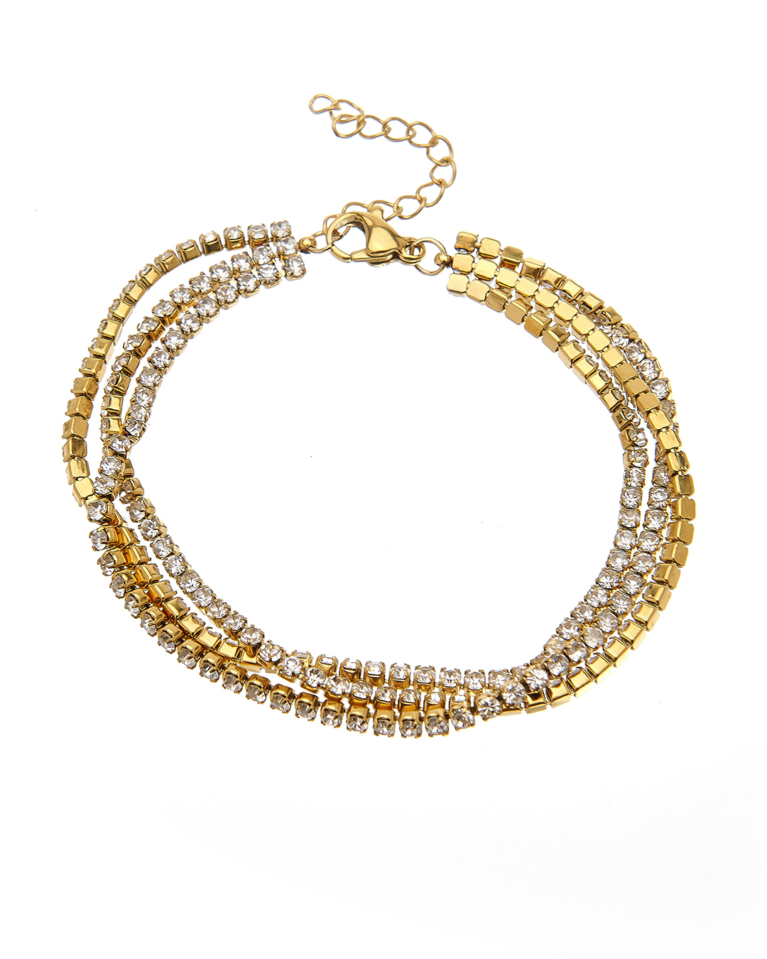 Ανανεώστε το στυλ σας με την κομψή τριπλή Αλυσίδα Χεριού . Αυτή η υπέροχη αλυσίδα συνδυάζει λάμψη και κομψότητα με διακριτικό τρόπο. Οι διακοσμητικές πέτρες προσθέτουν ένα μοναδικό στοιχείο στο κόσμημα, ενώ η ρυθμιζόμενη αλυσίδα εξασφαλίζει τέλεια εφαρμογή.Κατάλληλη για κάθε περίσταση, αυτή η αλυσίδα είναι η ιδανική προσθήκη στη συλλογή σας. Αναδείξτε τον καρπό σας με αυτό το λαμπερό κοσμημα, δημιουργώντας μια λαμπερή και στυλάτη εμφάνιση.Επιπλέον:Τα βραχιόλια έρχονται σε ένα κομψό κουτί δώρου.