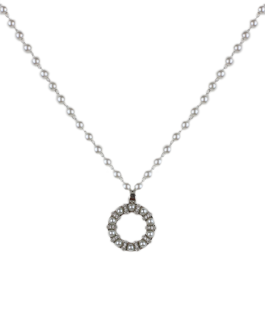 Αλυσίδα λαιμού με πέρλες MSN-10 - Ασημί