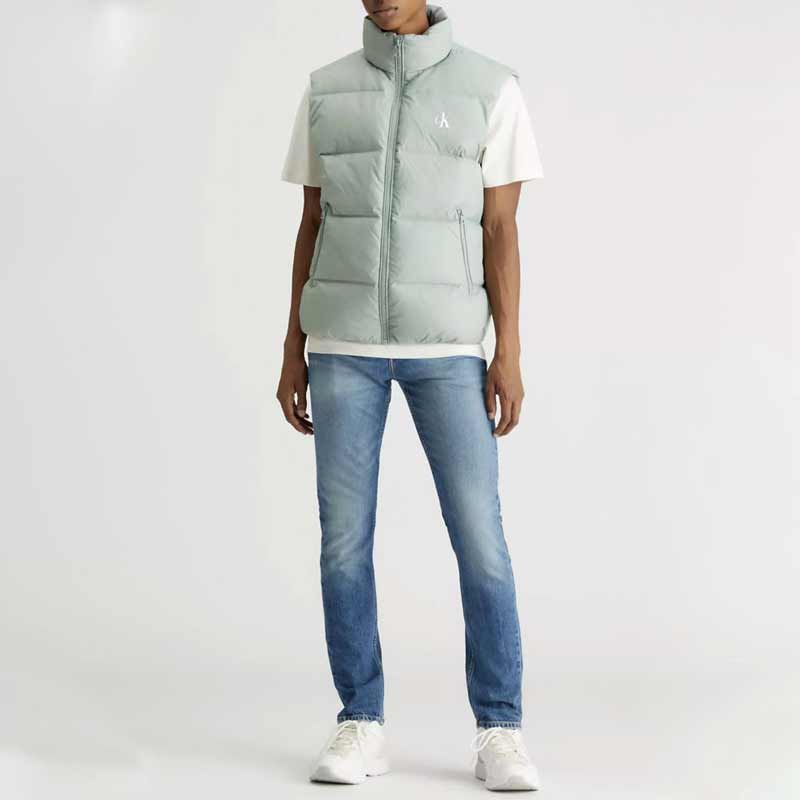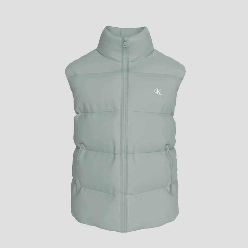 Ανδρικό αμάνικο μπουφάν puffer της Calvin Klein σε πράσινη απόχρωση. Φτιαγμένο από υδατοαπωθητικό υλικό, προσφέρει προστασία από τη βροχή. Διαθέτει εσωτερική επένδυση για επιπλέον ζεστασιά και είναι ελαφρύ, κατάλληλο για τους μεταβατικούς μήνες.