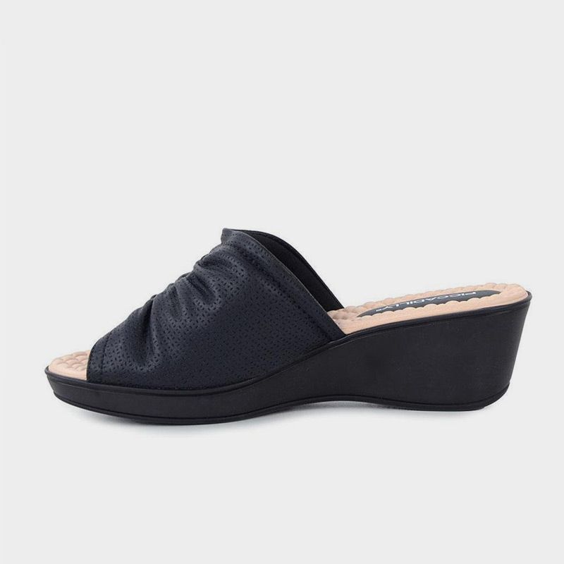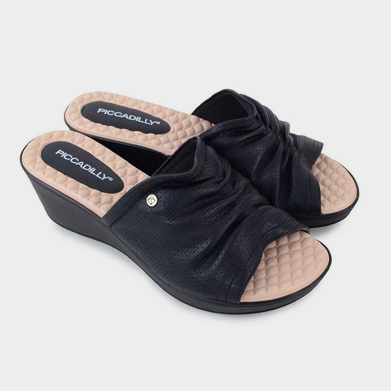 Οι ανατομικές παντόφλες Picadilly προσφέρουν εξαιρετικό πάτημα χάρις τις μαλακές σόλες gel καθώς και αντικραδασμική δράση. Η μεσαία πλατφόρμα με ύψος 5cm το καθιστούν ένα άκρως άνετο γυναικείο σανδάλι για τις καθημερινές σας βόλτες. Η τεχνολογία WIDE FIT είναι ιδανική για τα ταλαιπωρημένα και κουρασμένα άκρα και μειώνει τον πόνο που προκαλείται από το νεύρωμα Morton (φλεγμονή ενός νεύρου μεταξύ του τρίτου και του τέταρτου μικρότερου δακτύλου, που προκαλείται από χρόνια συμπίεση).