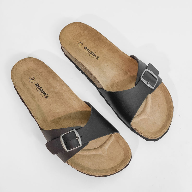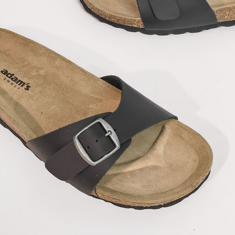 Ανατομική παντόφλα της Adam’s από οικολογικό δέρμα σε μαύρο χρώμα. Διαθέτει μαλακό πάτο κάνοντας το βήμα σας ελαφρού και άνετο. Μία casual επιλογή για κάθε μέρα.