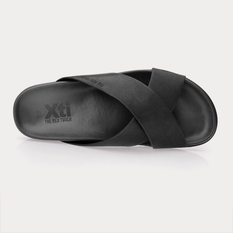 Ανδρική ανατομική παντόφλα της Ισπανικής εταιρίας Xti για άνετο βάδισμα όλη μέρα. Διαθέτει ανατομικό πάτο ιδιαίτερα μαλακό που προσφέρει αξεπέραστη άνεση και εύκαμπτη αντιολισθητική σόλα. Στο πάνω μέρος έχει δυο φαρδιές χιαστί φάσες για να παρέχει σωστή στήριξη στο πόδι.