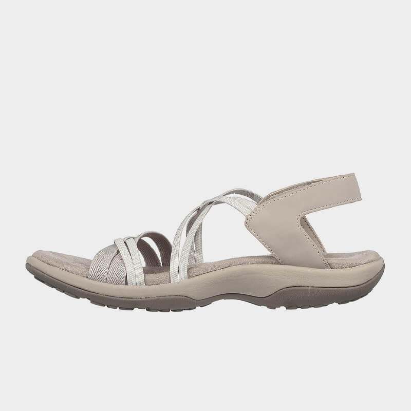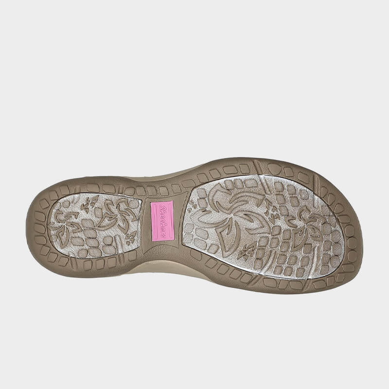 Ανατομικό πέδιλο της Skecher από οικολογικό δέρμα και ύφασμα υψηλής ποιότητας σε μπεζ χρώμα. Διαθέτει μαλακό πάτο Memory Foam και ελαστική εξωτερική σόλα. Ένα κομψό και αναπαυτικό πέδιλο για το καλοκαίρι.