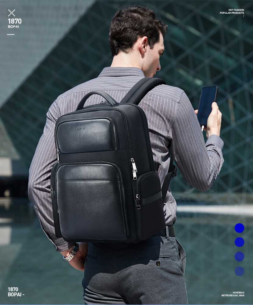 BOPAI Business BackpackΣτυλ, οργάνωση και άνεση στο πιο κομψό σακίδιο με δερμάτινες λεπτομέριες στο εμπρόσθιο μέρος και ύφασμα premium ποιότητάς .