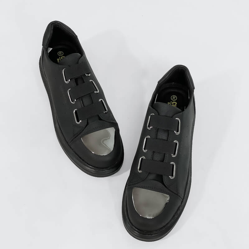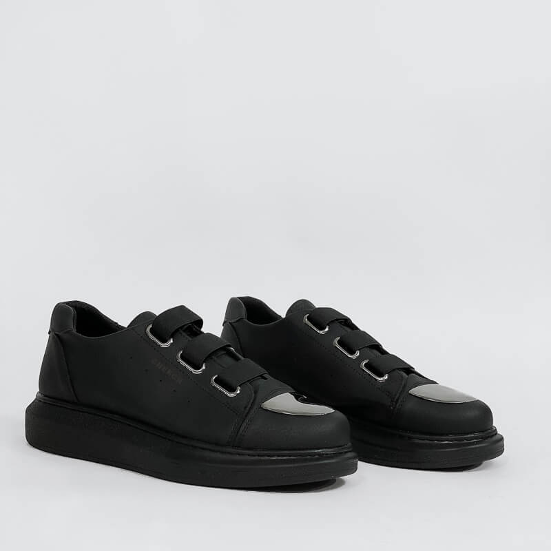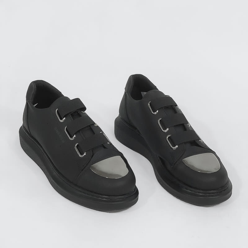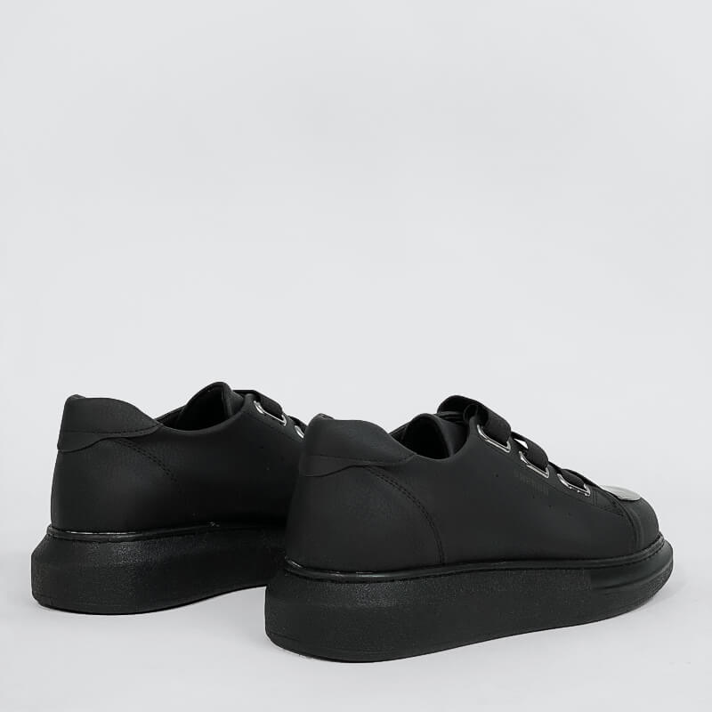 Δερμάτινο sneaker με χοντρή σόλα και μεταλλική λεπτομέρεια στο μπροστινό μέρος. Έχει μαλακό εσωτερικό πάτο και σόλα από καουτσούκ για άνετο βηματισμό. Ένα sneaker κατάλληλο για την διάρκεια της ημέρας.