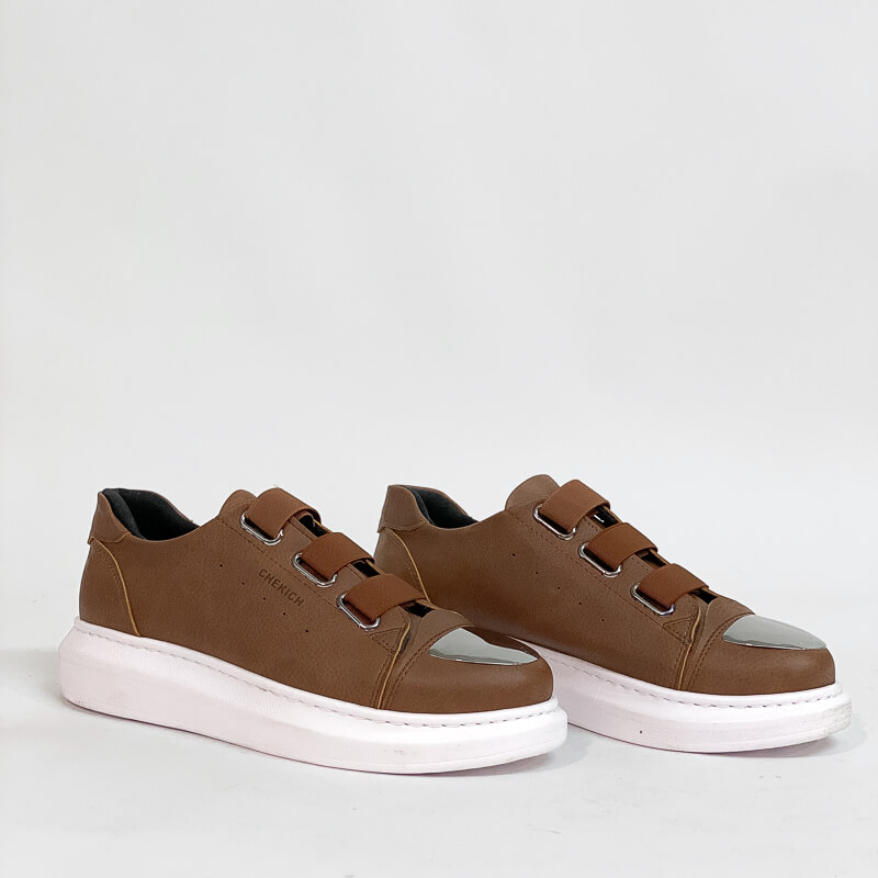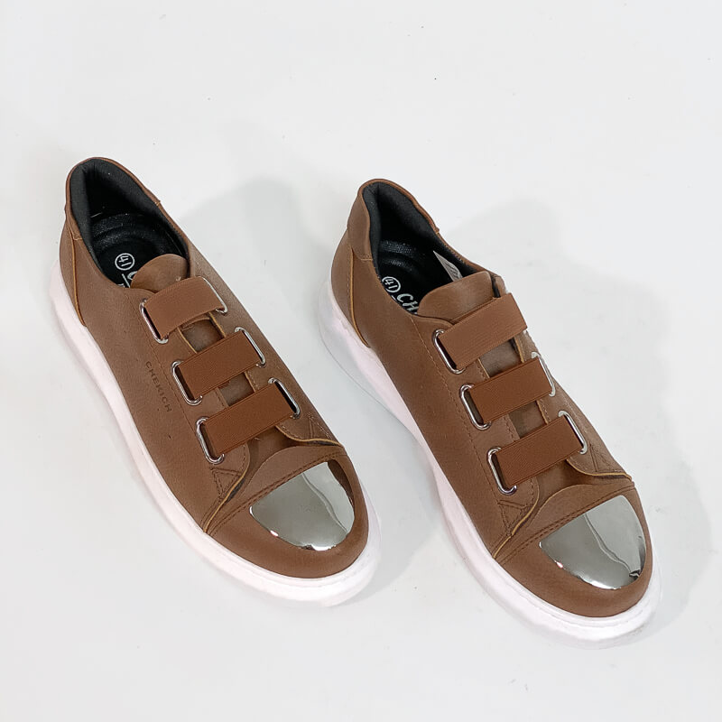 Δερμάτινο sneaker με χοντρή σόλα και μεταλλική λεπτομέρεια στο μπροστινό μέρος. Έχει μαλακό εσωτερικό πάτο και σόλα από καουτσούκ για άνετο βηματισμό. Ένα sneaker κατάλληλο για την διάρκεια της ημέρας.
