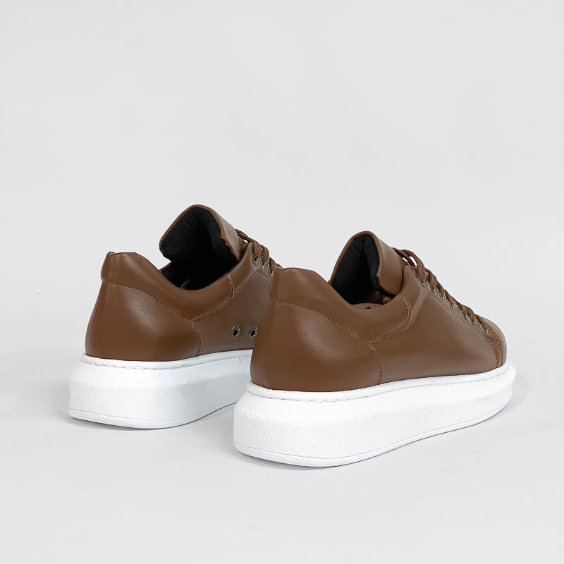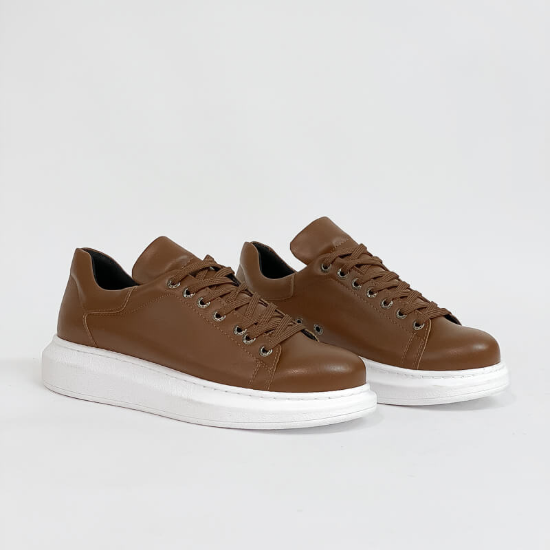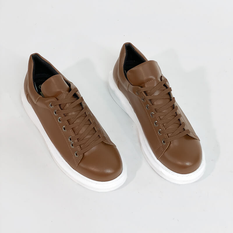 Δερμάτινο sneaker με χοντρή σόλα από οικολογικό δέρμα σε ταμπά απόχρωση. Έχει μαλακό εσωτερικό πάτο και σόλα από καουτσούκ για άνετο βηματισμό. Ένα sneaker κατάλληλο για την διάρκεια της ημέρας.