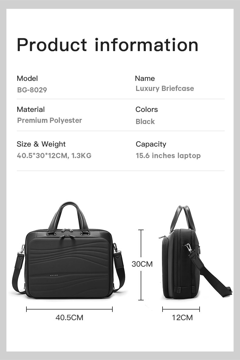 Ο χαρτοφύλακας laptop Bange προσφέρει στυλ και λειτουργικότητα. Με ανθεκτικό premium polyester, χωρητικότητα έως 15.6’’ και πολλαπλές θήκες οργάνωσης, αποτελεί την ιδανική επιλογή για επαγγελματίες που αναζητούν κομψότητα και ασφάλεια στις καθημερινές τους μετακινήσεις.