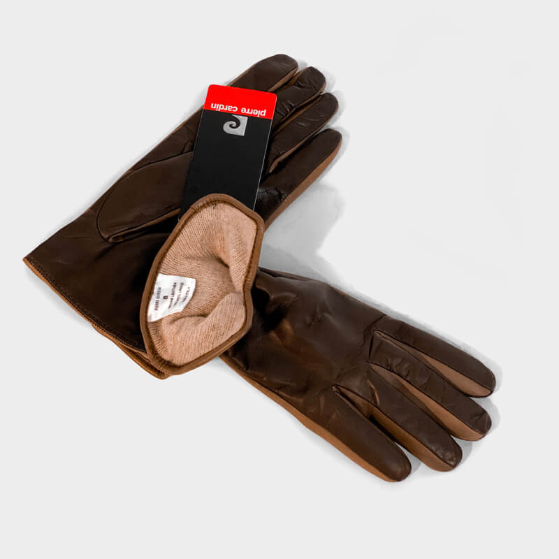Δερμάτινα γάντια Pierre Cardin με διχρωμία μαύρο-καφέ. Ένα σικάτο και ζεστό γάντι με εσωτερική επένδυση από φλις.