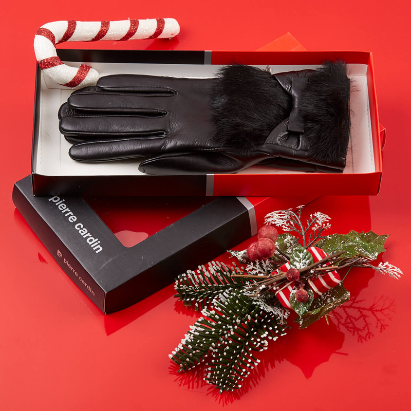 Δερμάτινα γάντια Pierre Cardin με διακοσμητική γούνα και διακριτικό φιόγκο. Ένα σικάτο και ζεστό γάντι με εσωτερική επένδυση από φλίς. Ιδανική πρόταση για δώρο, ένα αξεσουάρ με άριστη ποιότητα κατασκευής, που κολακεύει το χέρι και δίνει ιδιαίτερο χαρακτήρα στο στιλ σας.