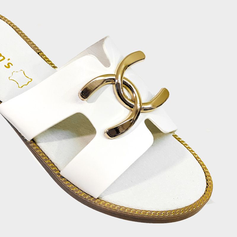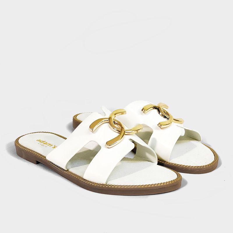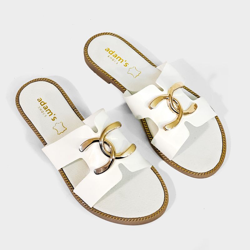 Σανδάλια της Adam’s από γνήσιο δέρμα σε άσπρο χρώμα. Διαθέτουν αναπαυτικό πάτο και μεταλλικό διακοσμητικό σε χρυσό τόνο.